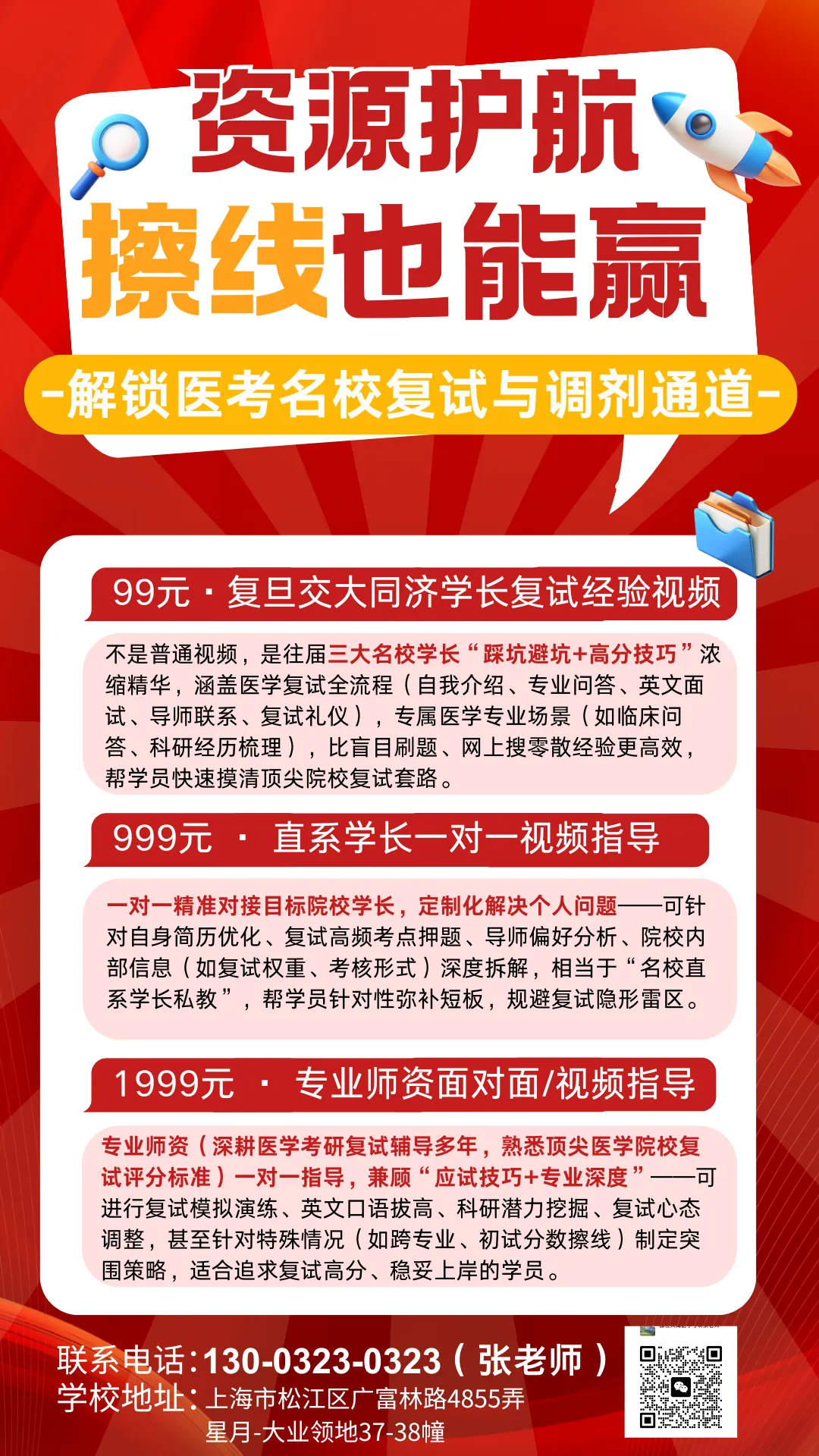 ✅ 实时监控各大医学院招生动态、导师名额变化✅ 直接对接目标院校的导师资源和学长网络✅ 精准匹配考生背景与调剂机会✅ 定制化复试辅导,直击导师考察要点