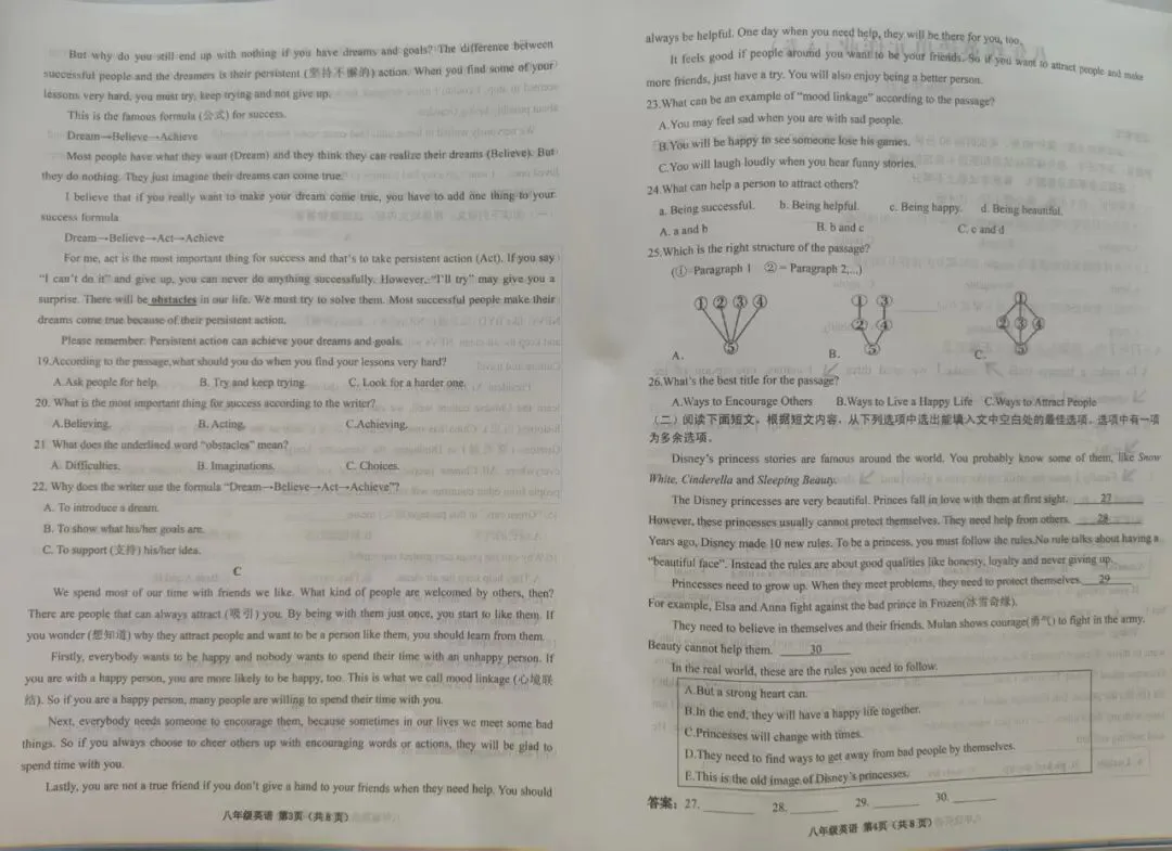 · 考查点:概念例证(23题 mood linkage)、细节归纳(24题)、文章结构(25题,总分总结构)、主旨标题(26题)。