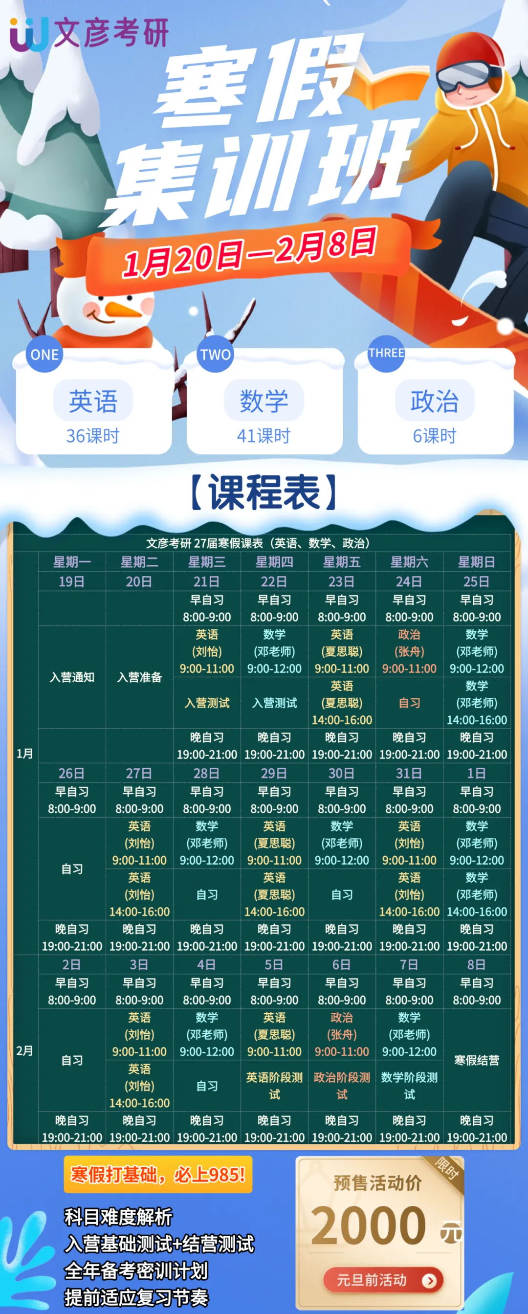 文彦考研 | 寒假集训营重磅开启!寒假蓄力,一战成硕!!!