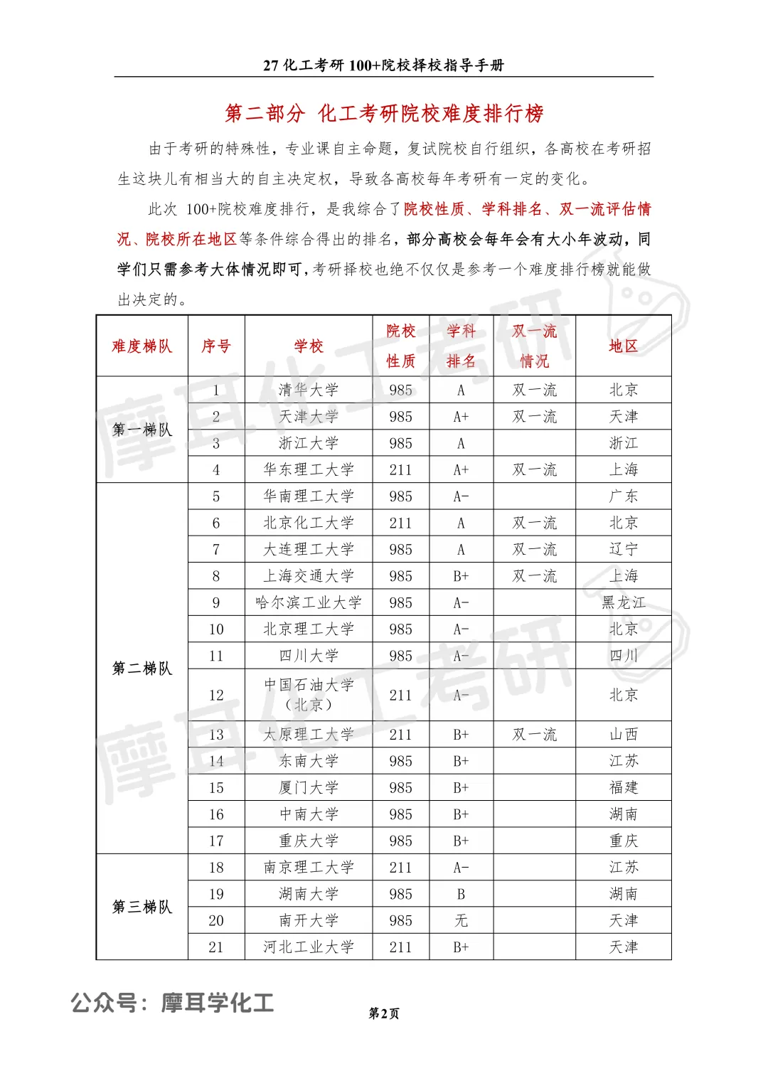 下面我来给大家仔细介绍下这份27化工考研择校指导手册。