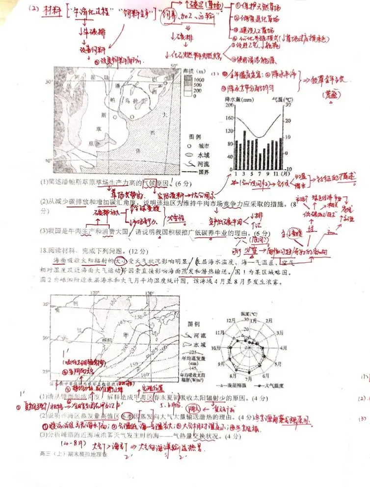 ⑥18题(1)锋面系统的形成过程(概念);(2)(3)海-气相互作用、影响蒸发的因素