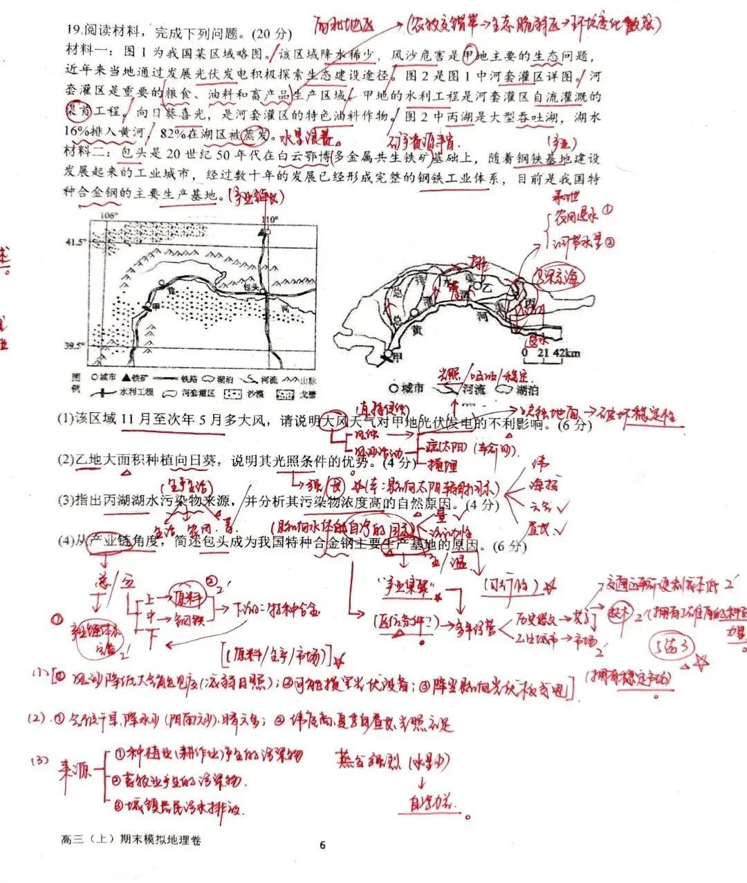 ⑦19题(1)风沙活动的危害;(2)影响太阳辐射量的因素;