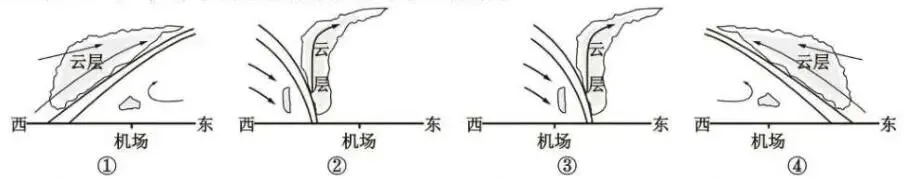 15.当日20时,机场与锋面之间位置关系示意正确的是