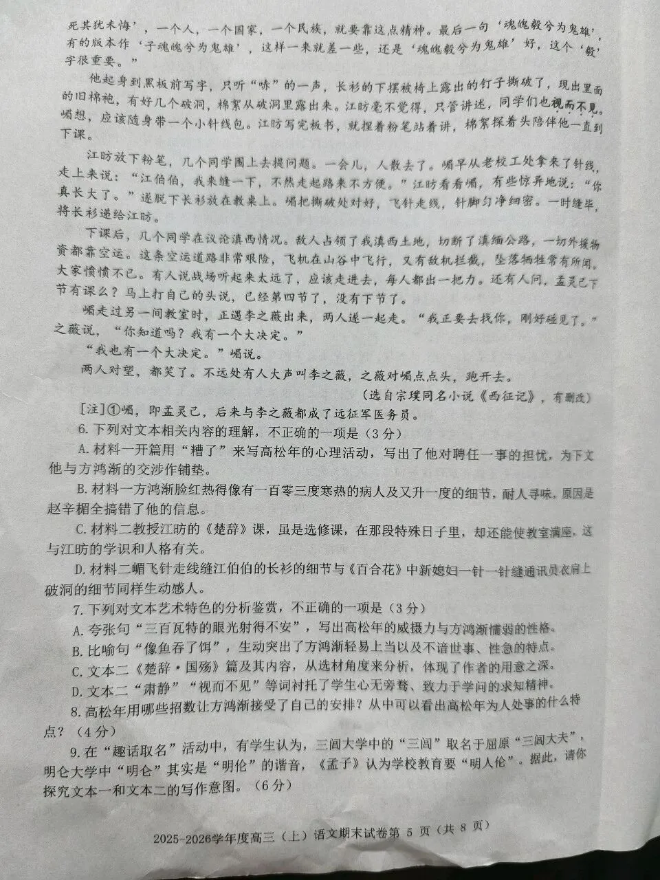 7.D(“衬托了学生心无旁骛、致力于学问的求学精神”错,衬托的是江昉教学与人格魅力。)