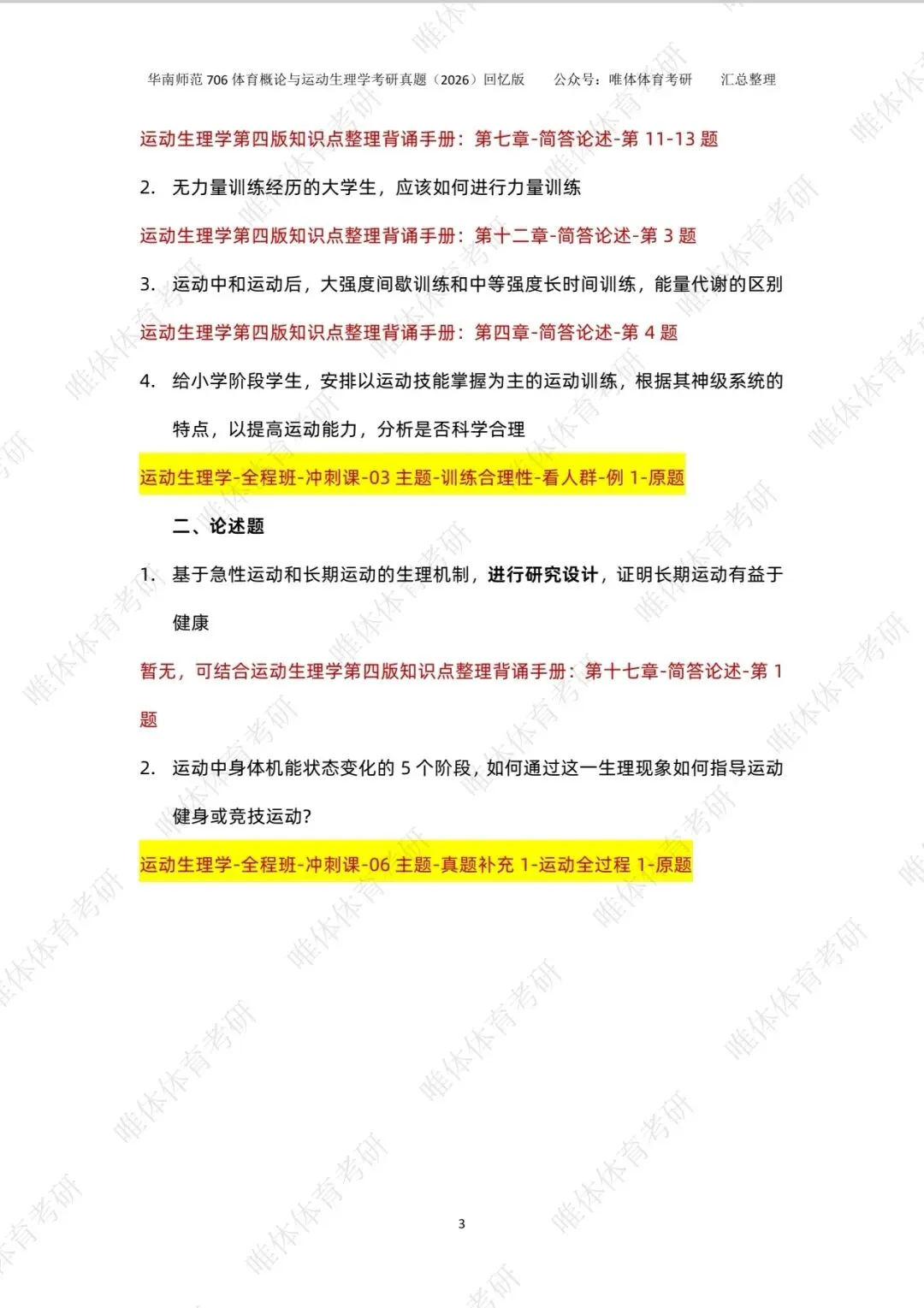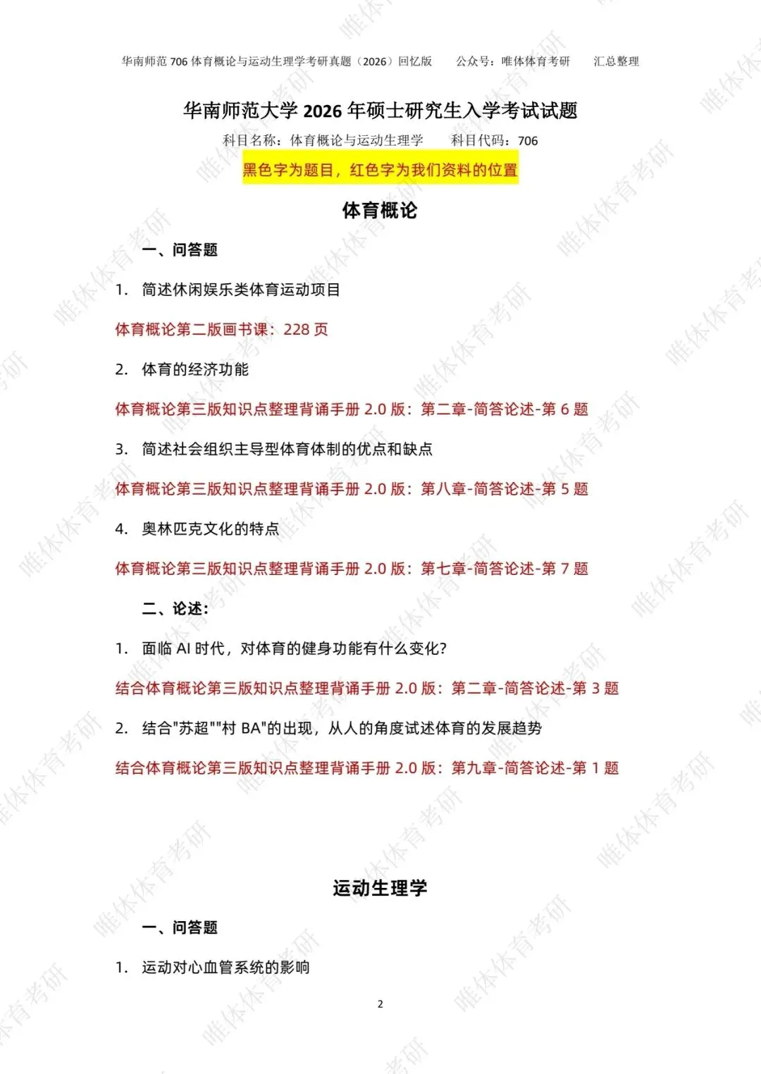 【体育考研】26考研华南师范大学706体育概论与运动生理学真题!
