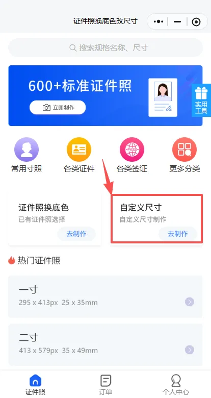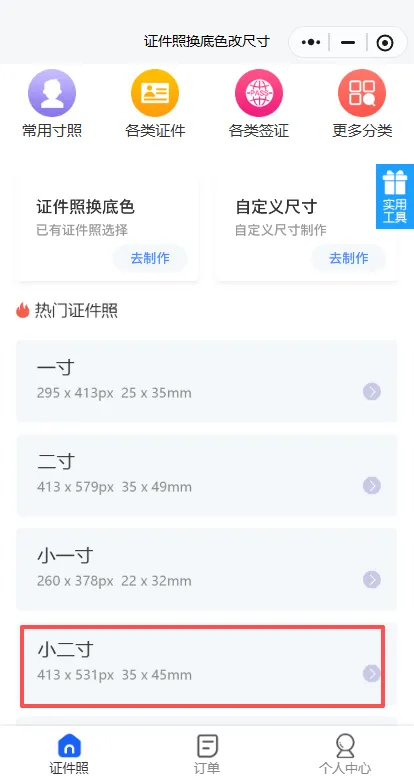 打开小程序,在搜索框或规格库中直接查找并选择 “小二寸” 模板。