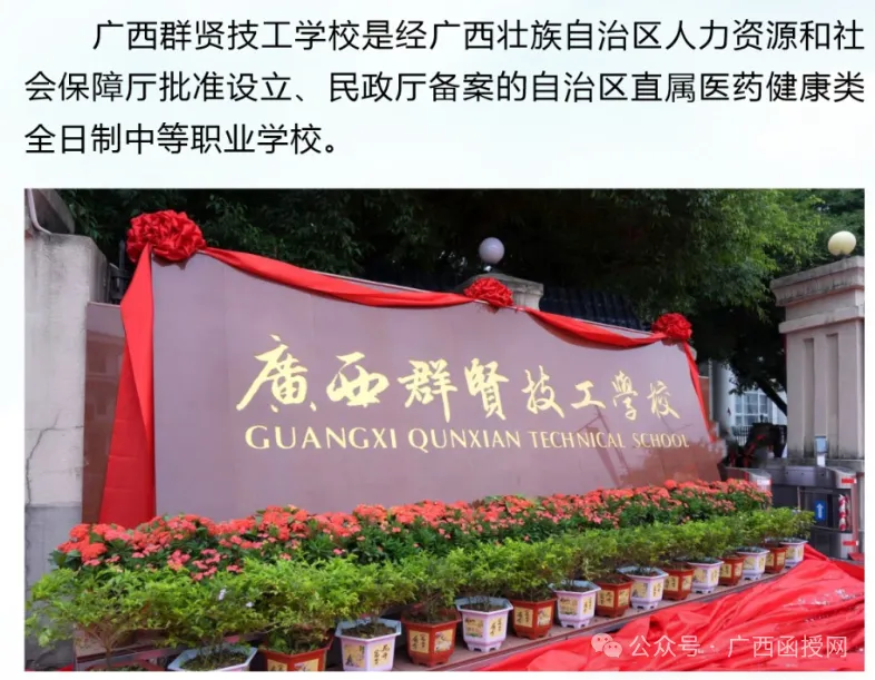 广西群贤技工学校是经广西壮族自治区人力资源和社会保障厅批准设立、民政厅备案的自治区直属医药健康类全日制中等职业学校。南宁市公办中职技工学校2025年报名进行中,热门专业学位紧张,请各家长注意提前与老师确认再报名!谢谢配合!