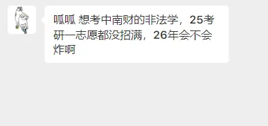 有同学问:想考中南财的非法学,25考研一志愿都没招满,26会不会炸啊