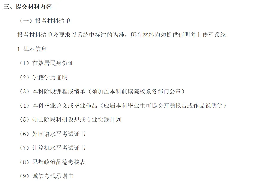 报考材料须通过我校“研究生招生管理系统”(以下简称“系统)提交,通过其他途径提交的材料无效。