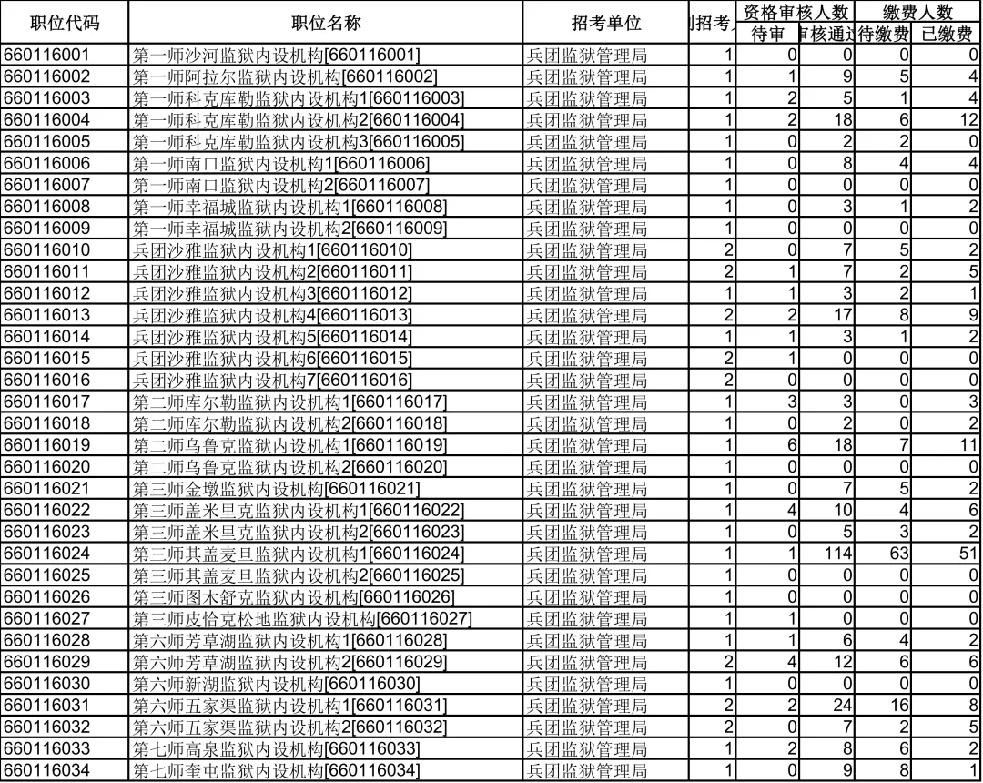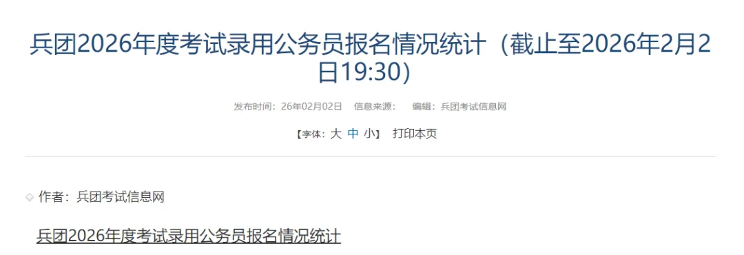 >兵团2026年度考试录用公务员报名情况统计(截止至2026年2月2日19:30)