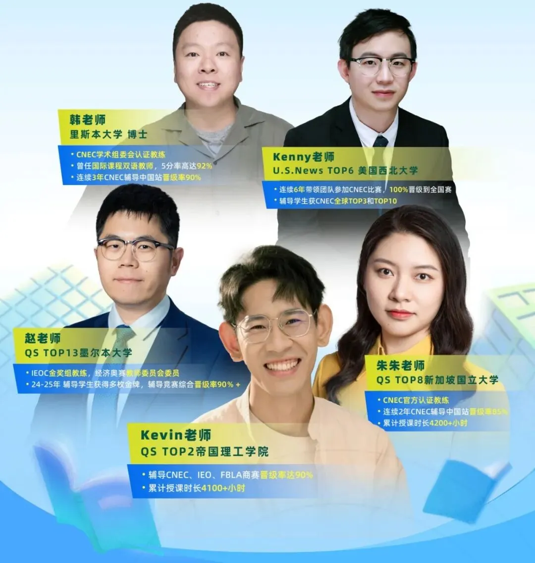 思客NEC竞赛的授课导师皆具备名校商科方向硕/博士学位,他们深耕经济学学术领域,研究造诣深厚。在教学与执教方面经验丰富,凭借专业指导,所带学员晋级中国站的几率颇高。