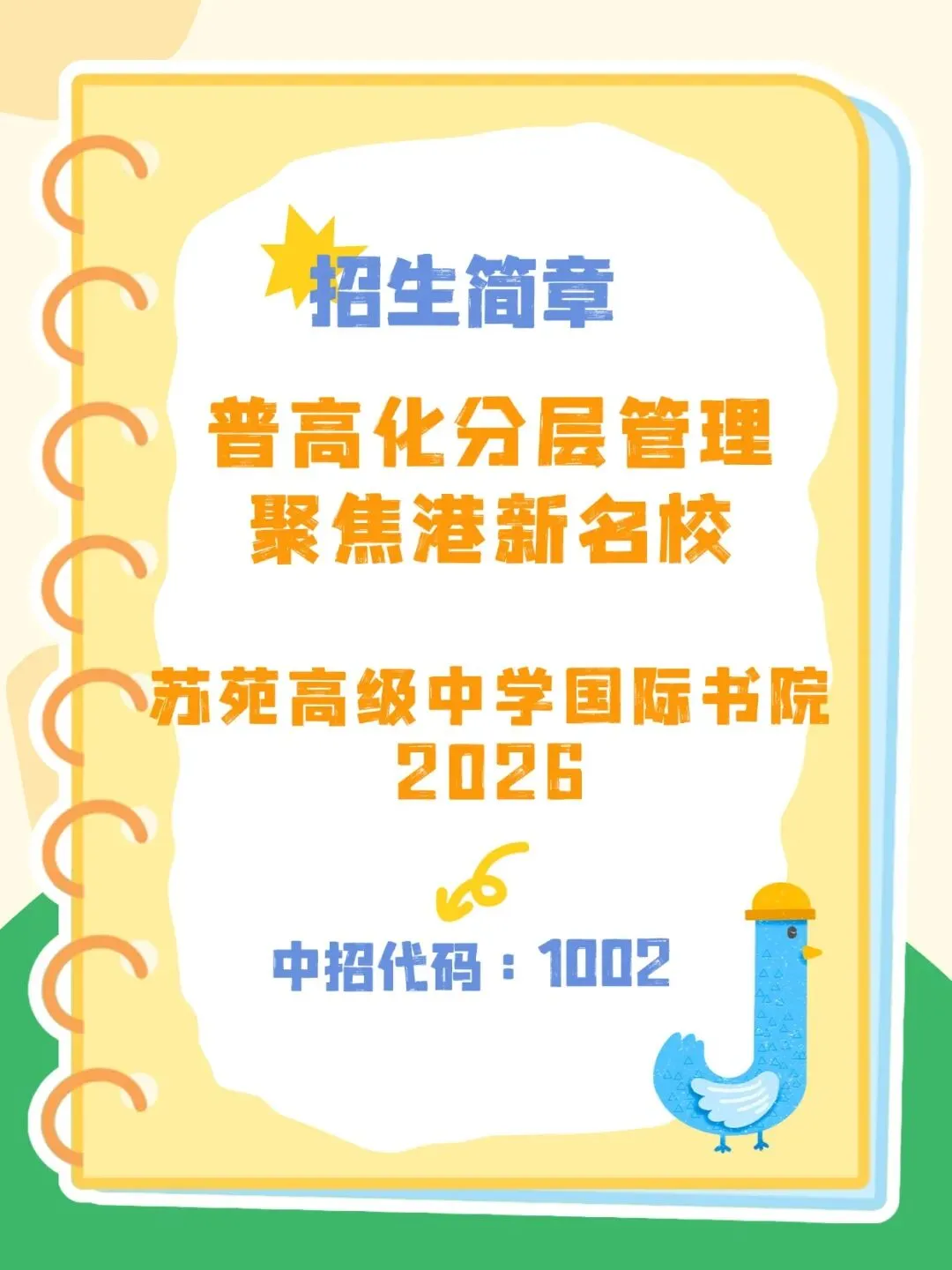 苏苑高级中学国际书院作为学校“一体四翼”发展战略中至关重要的一环,与“苏星科技班”、“女排”、“清华美术班”共同构筑了苏苑高级中学多元共生、特色鲜明的培育模式。国际书院深耕港新升学领域,把握个体,精英教学,追随时代,面向未来;培养具有国际视野、中华灵魂、卓越学识、独具匠眼的综合性全球英才,引导学生在探索中发现自我、塑造自我、成就自我。- 考生可在中考志愿中填报苏苑高级中学国际书院(中招代码:1002),择优录取。