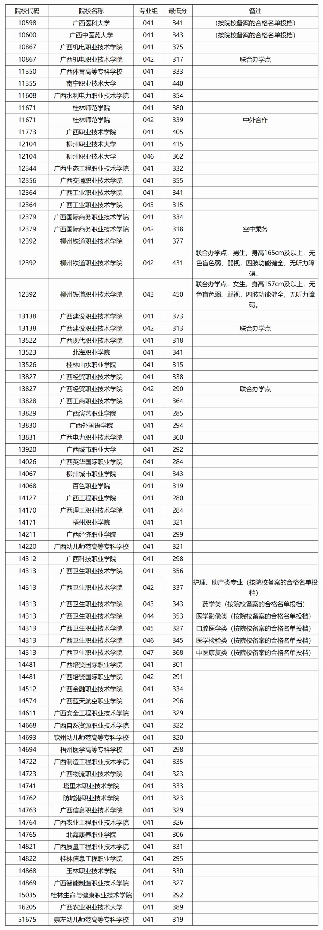 | 14312 | 广西科技职业学院 | 041 | 334 |