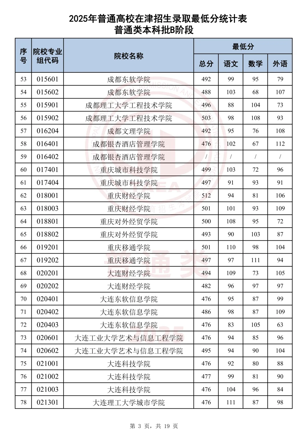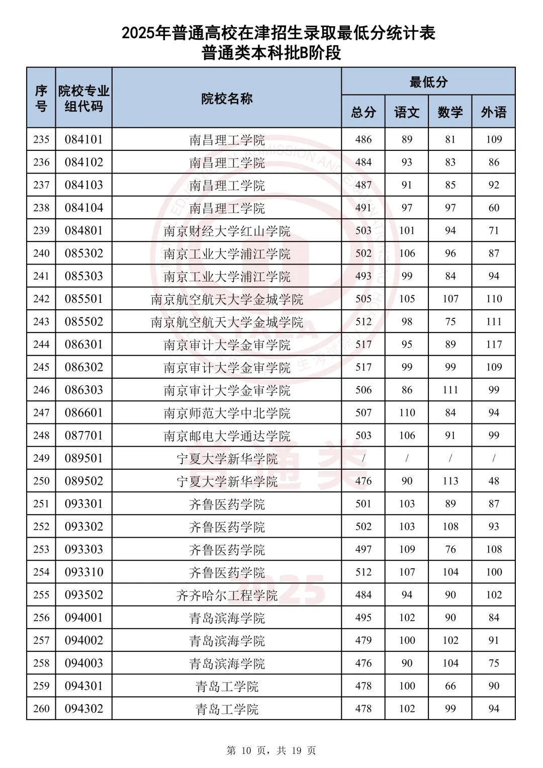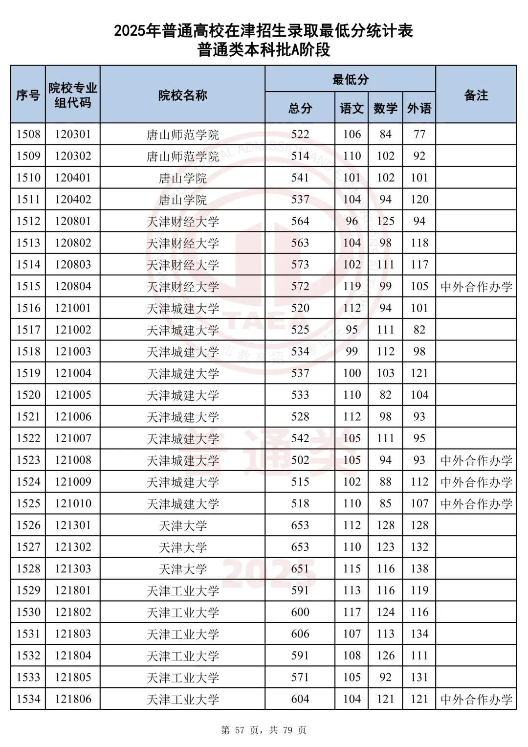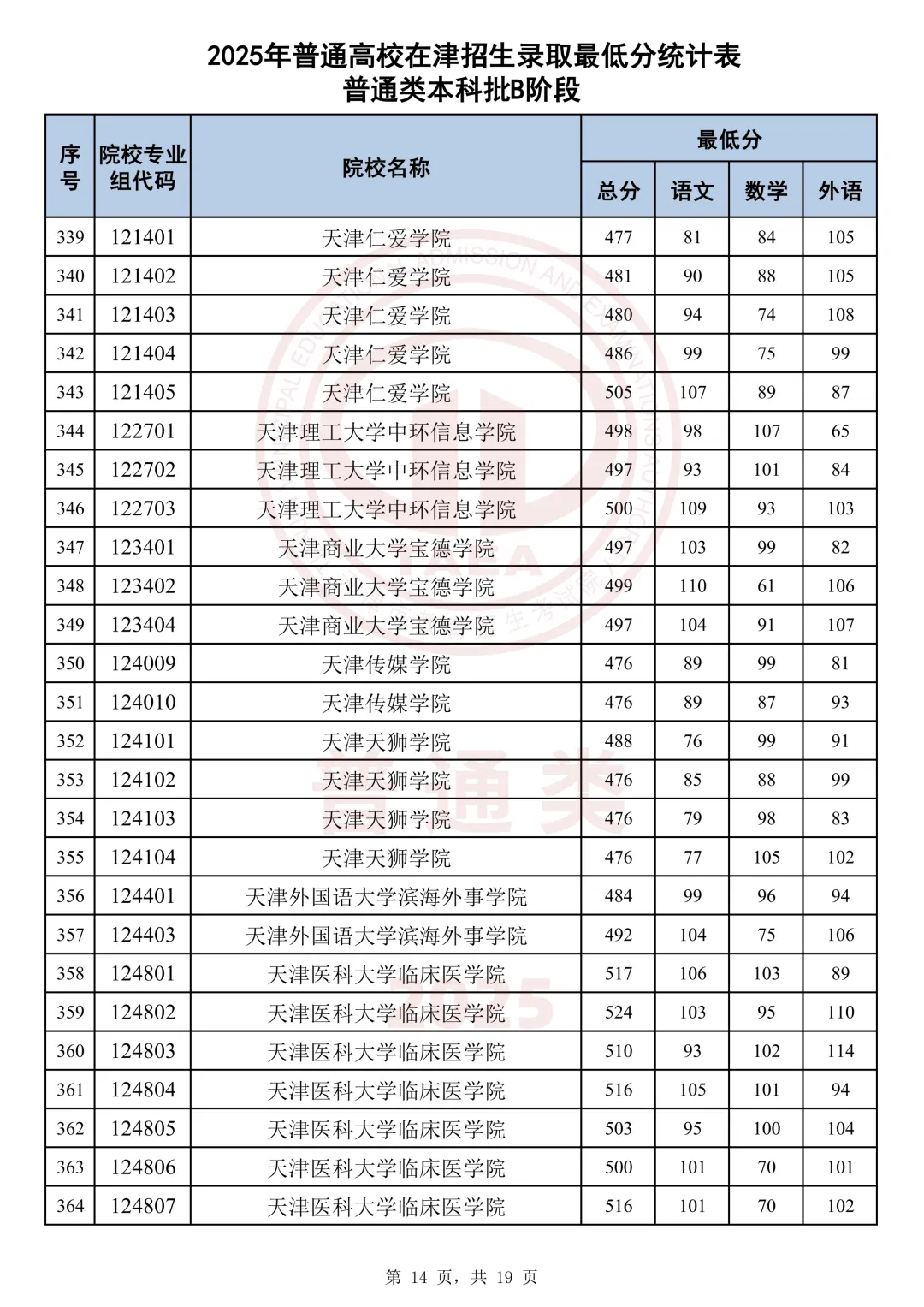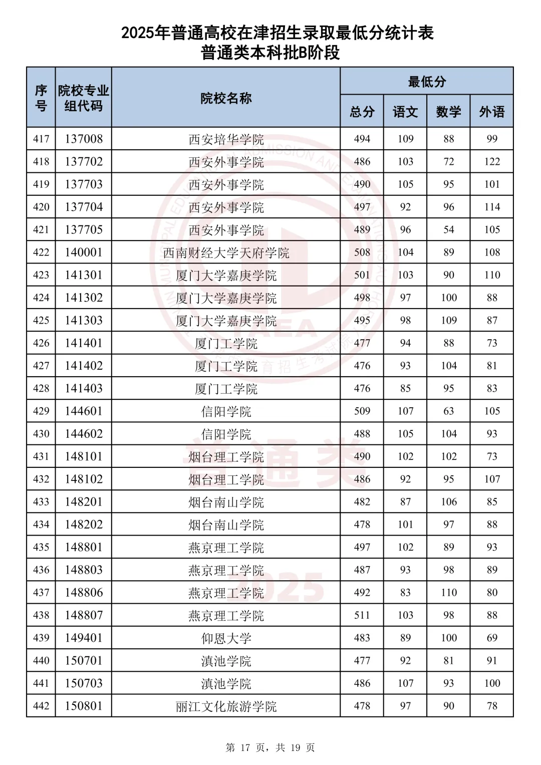 今天分享2025天津本科AB段最低分汇总