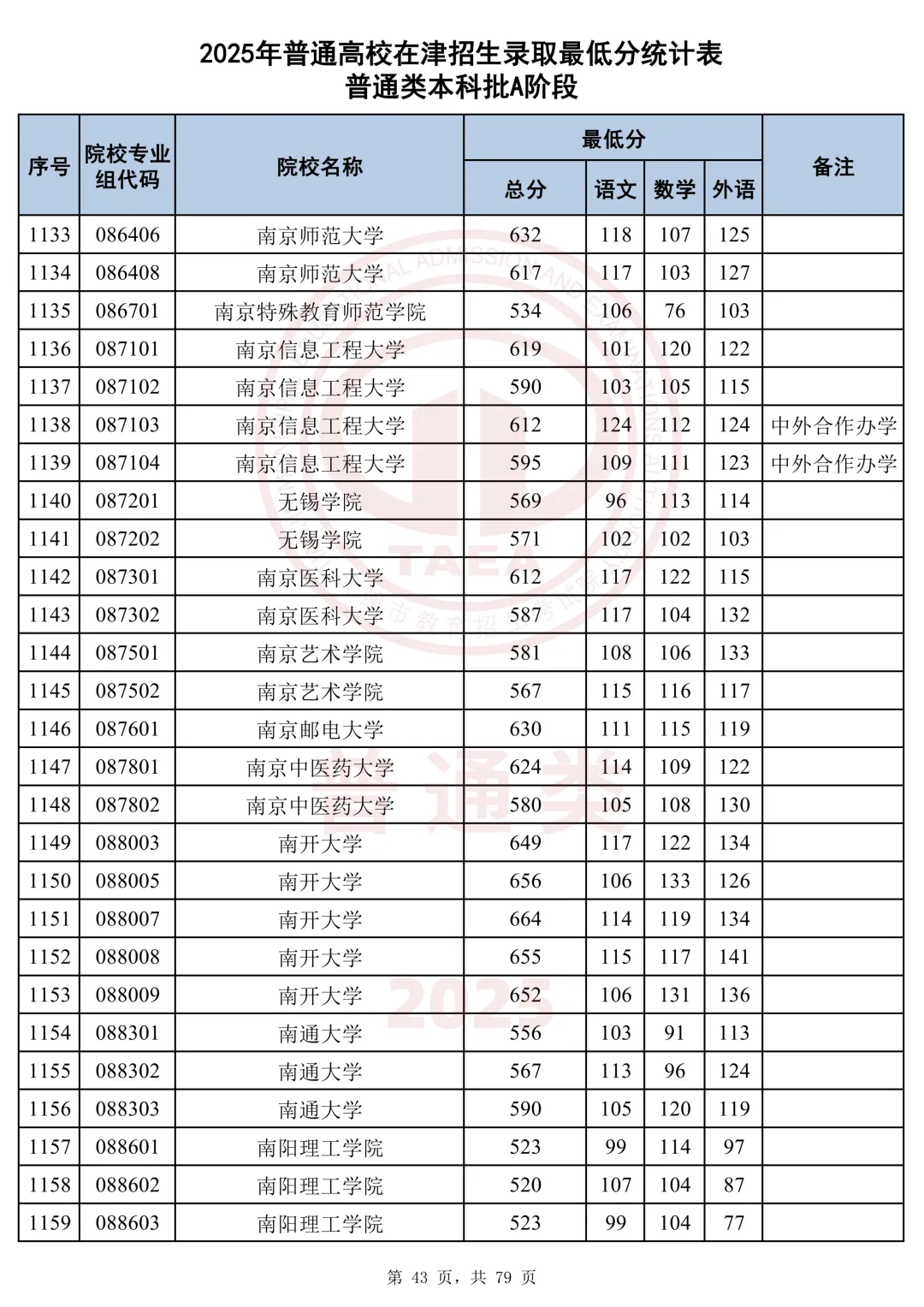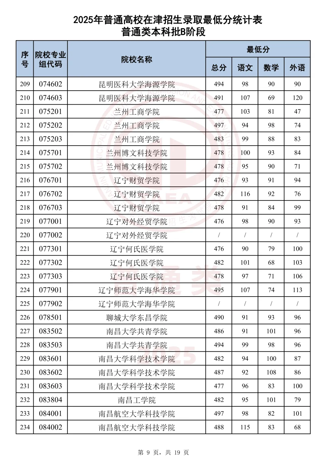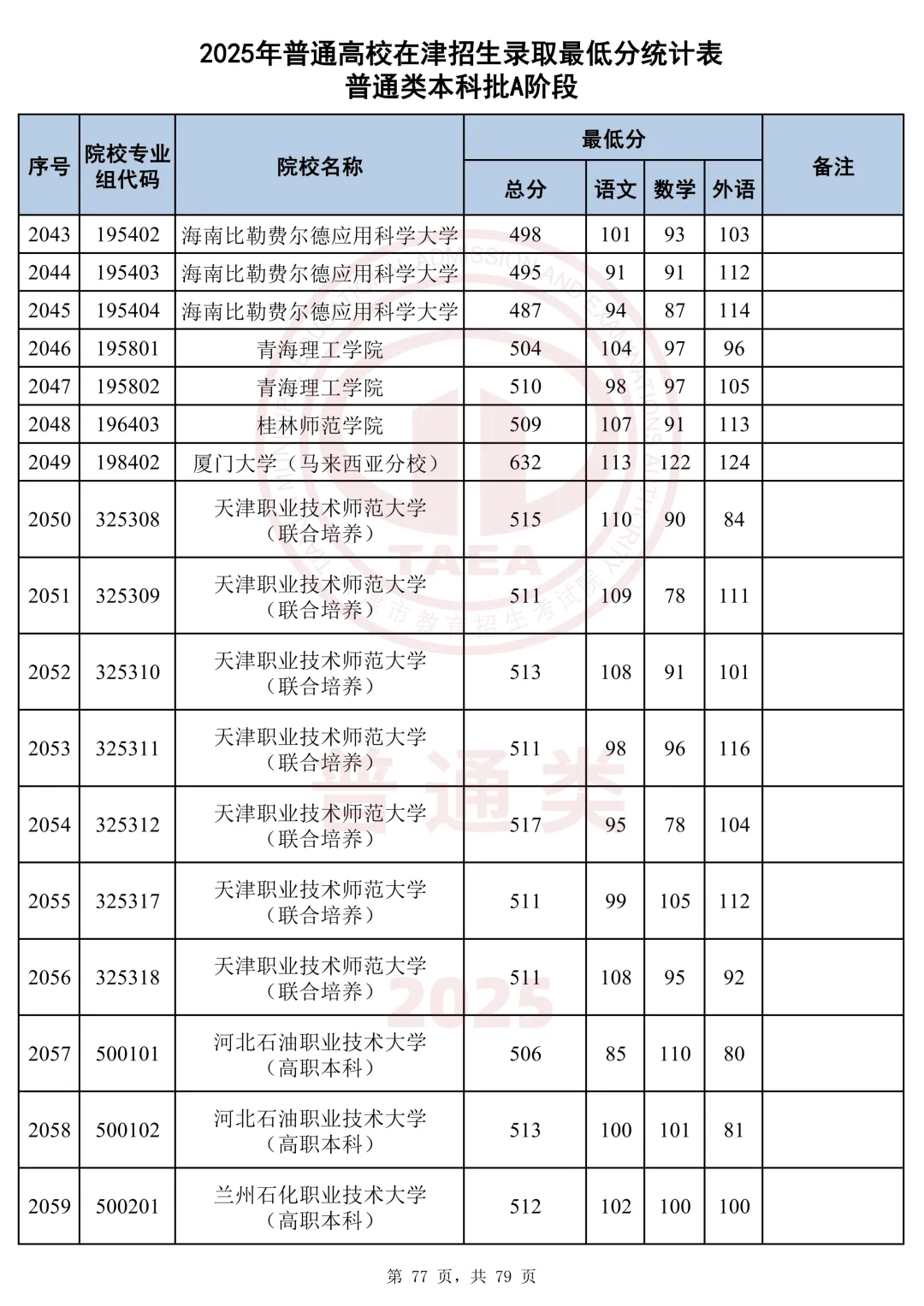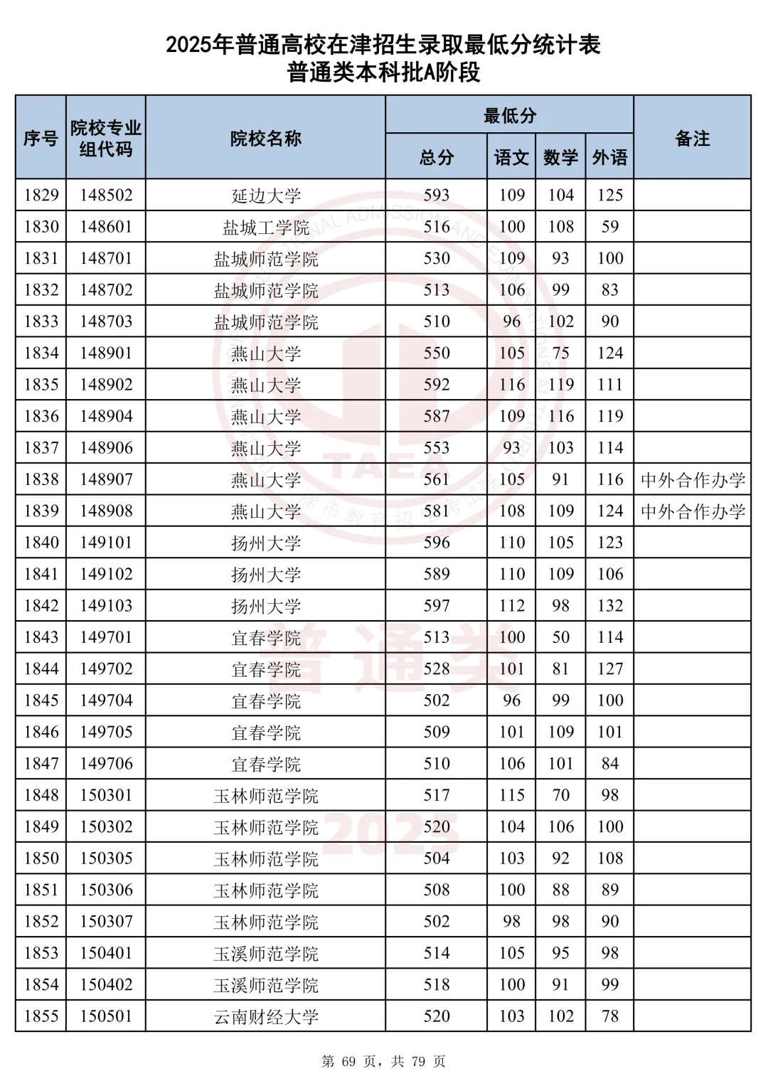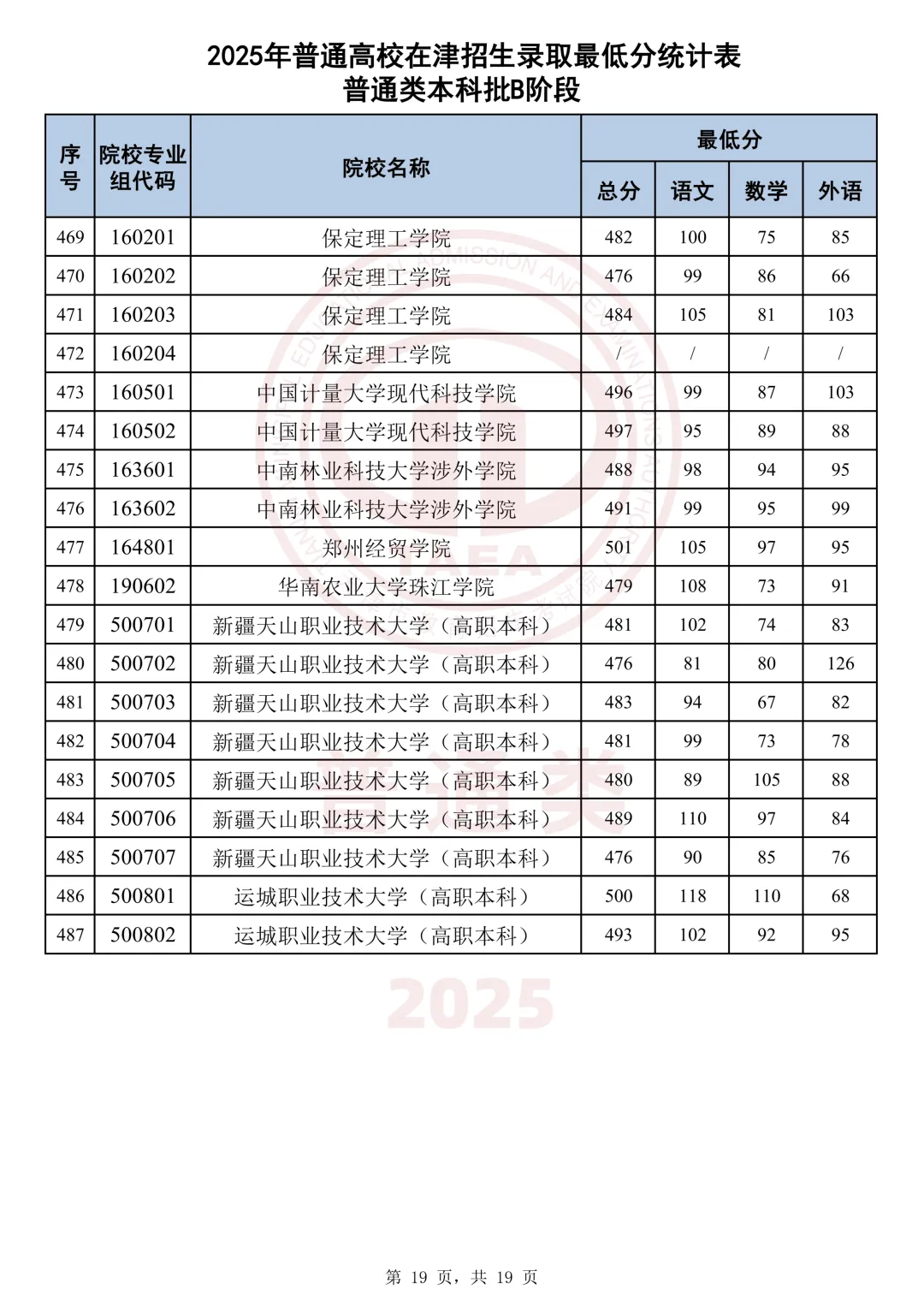 今天分享2025天津本科AB段最低分汇总