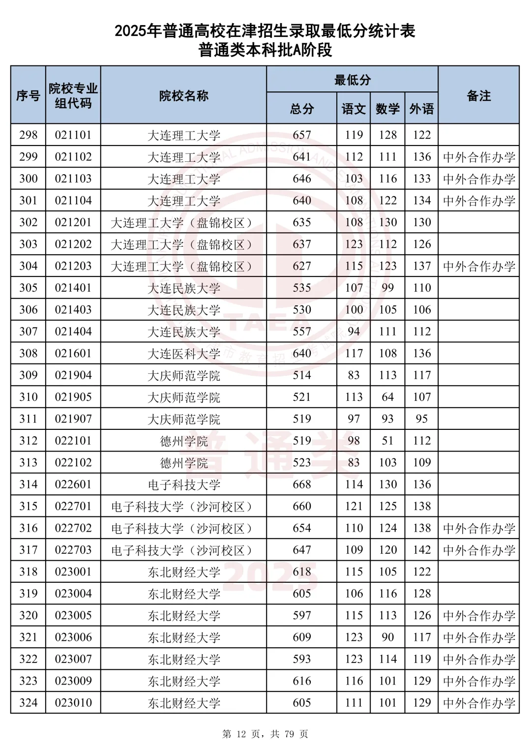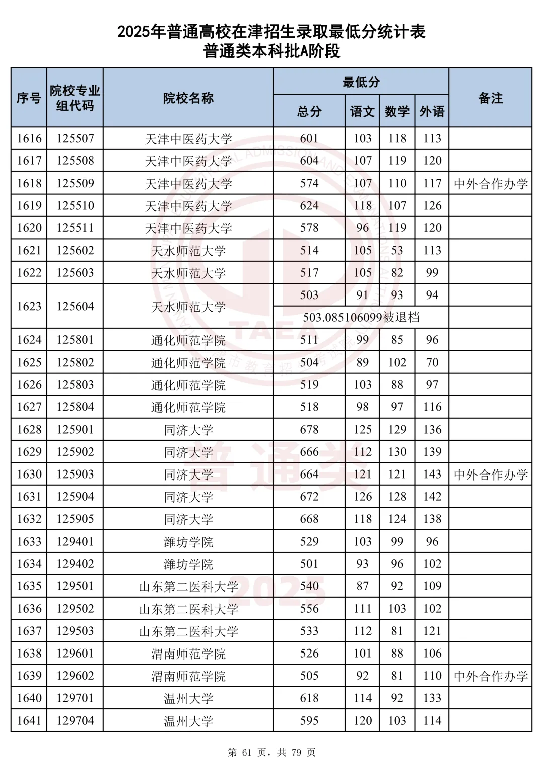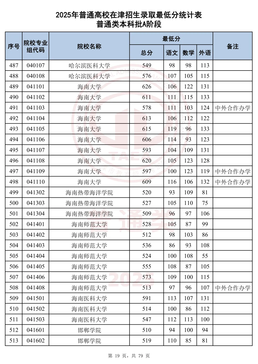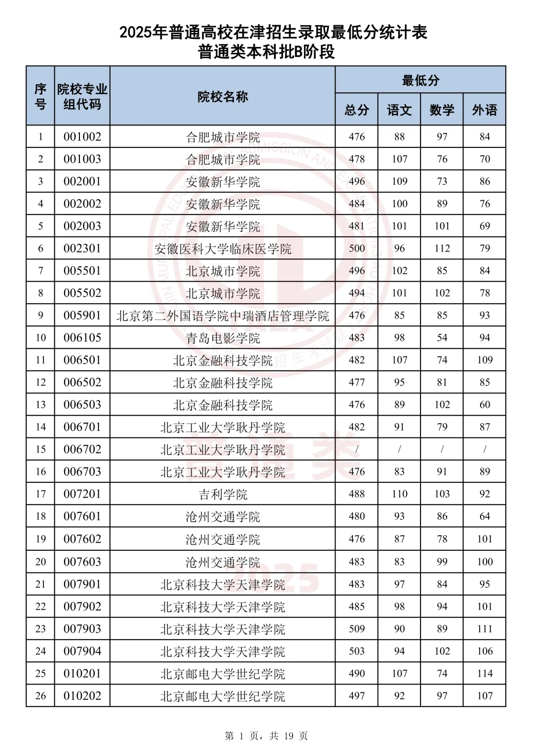 今天分享2025天津本科AB段最低分汇总