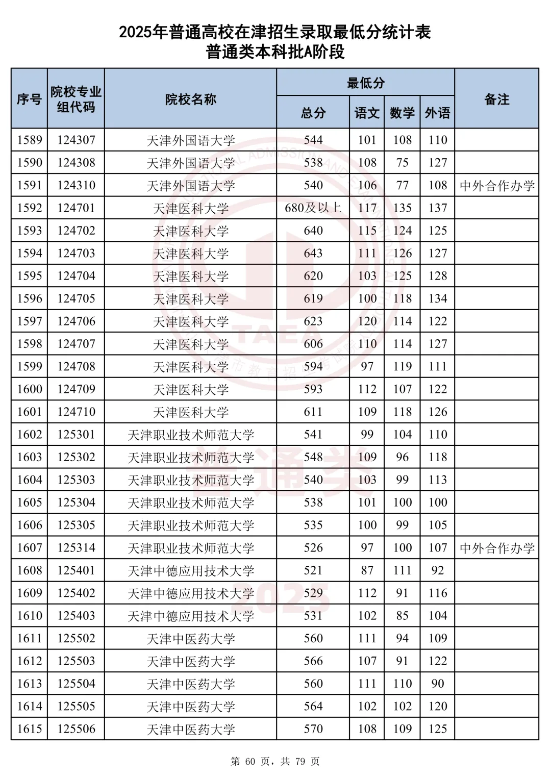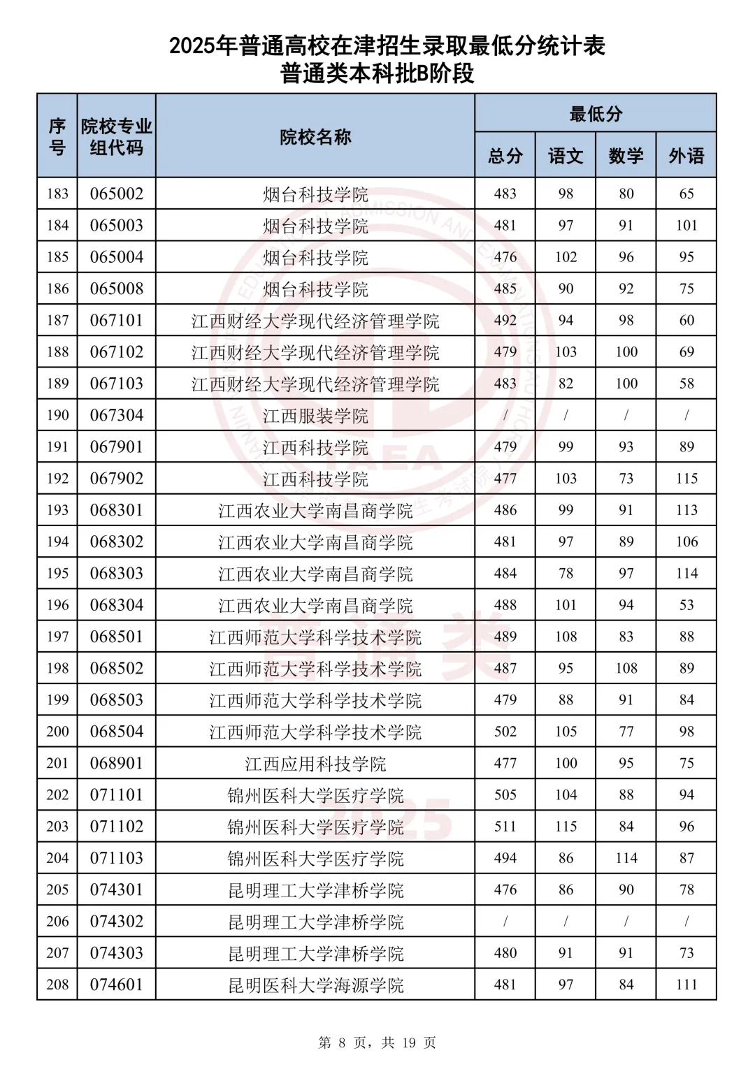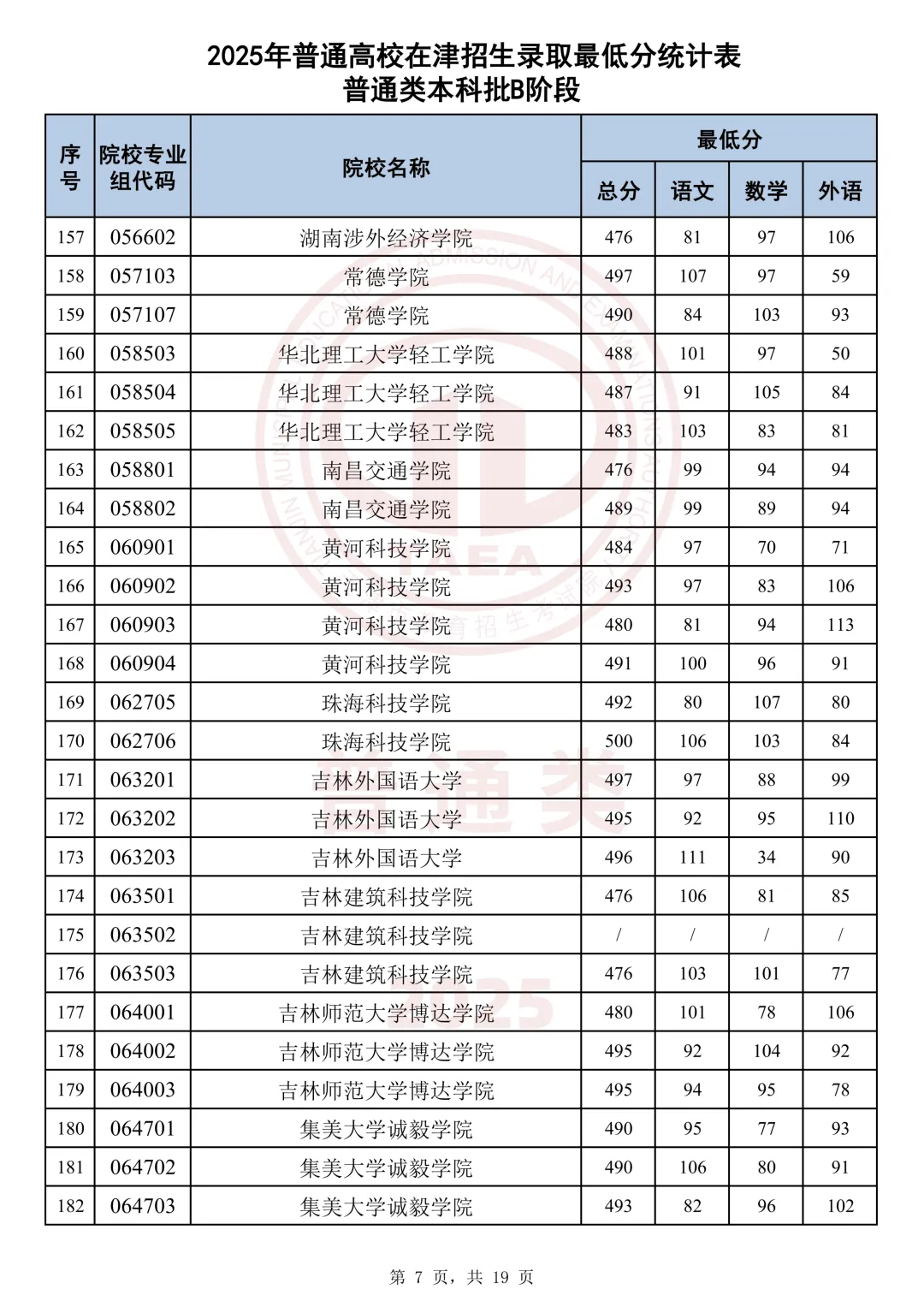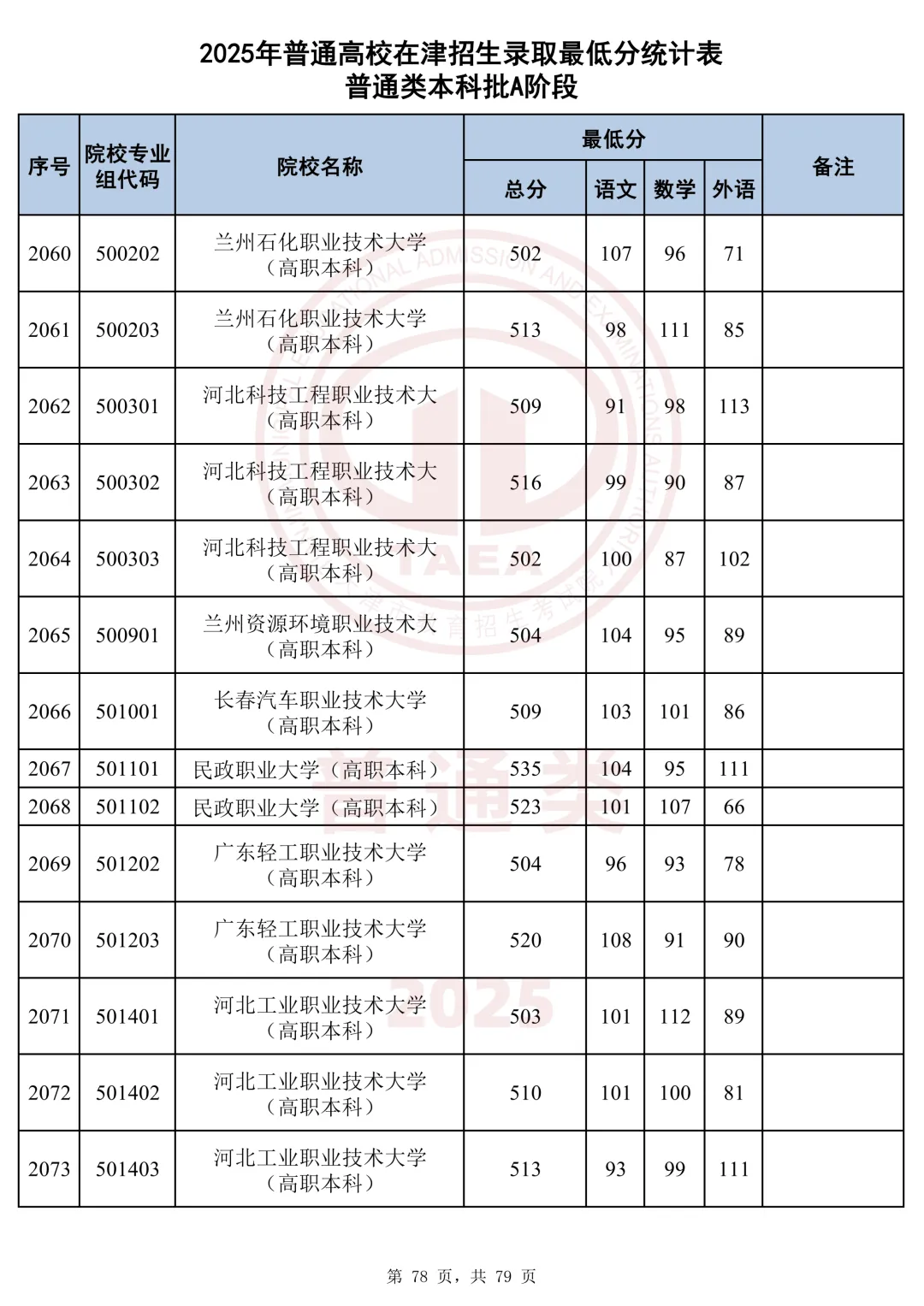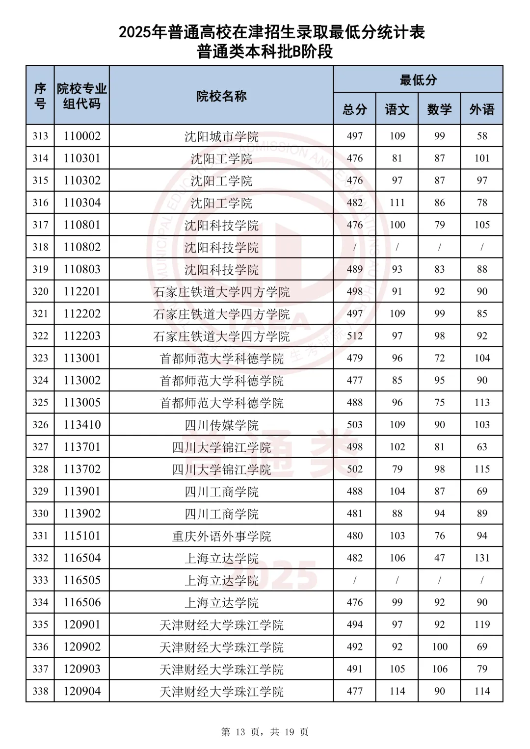 今天分享2025天津本科AB段最低分汇总