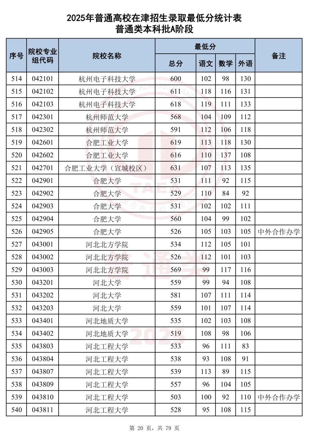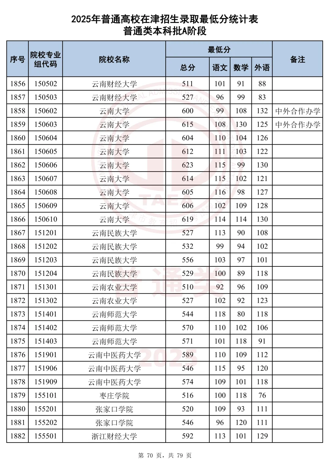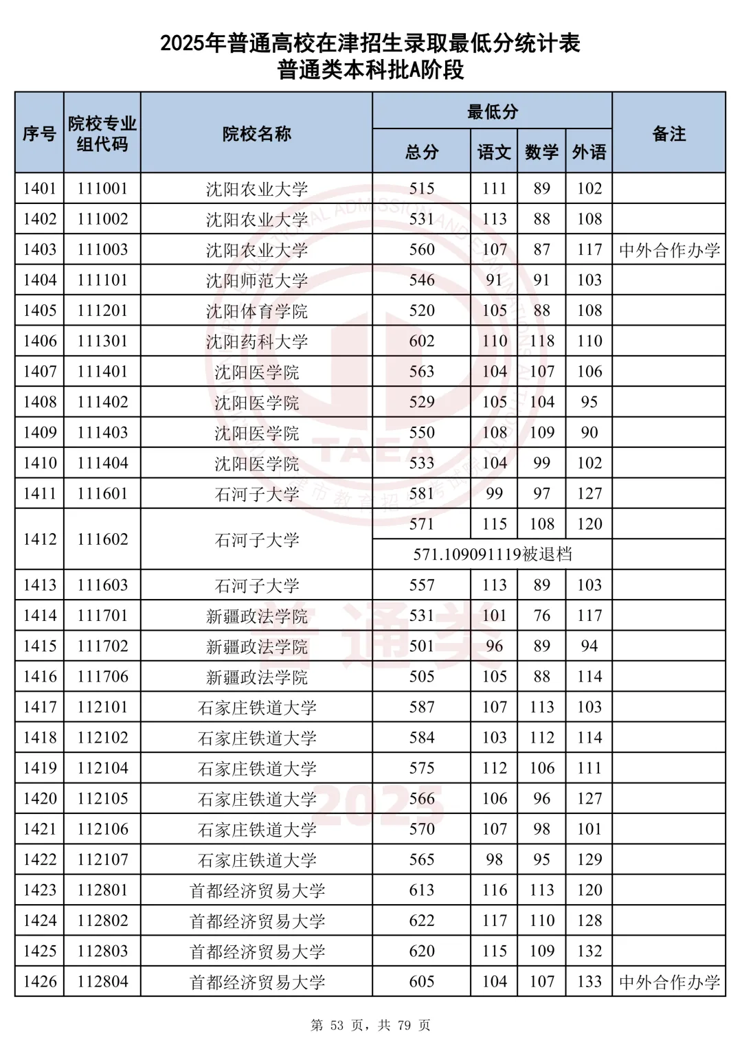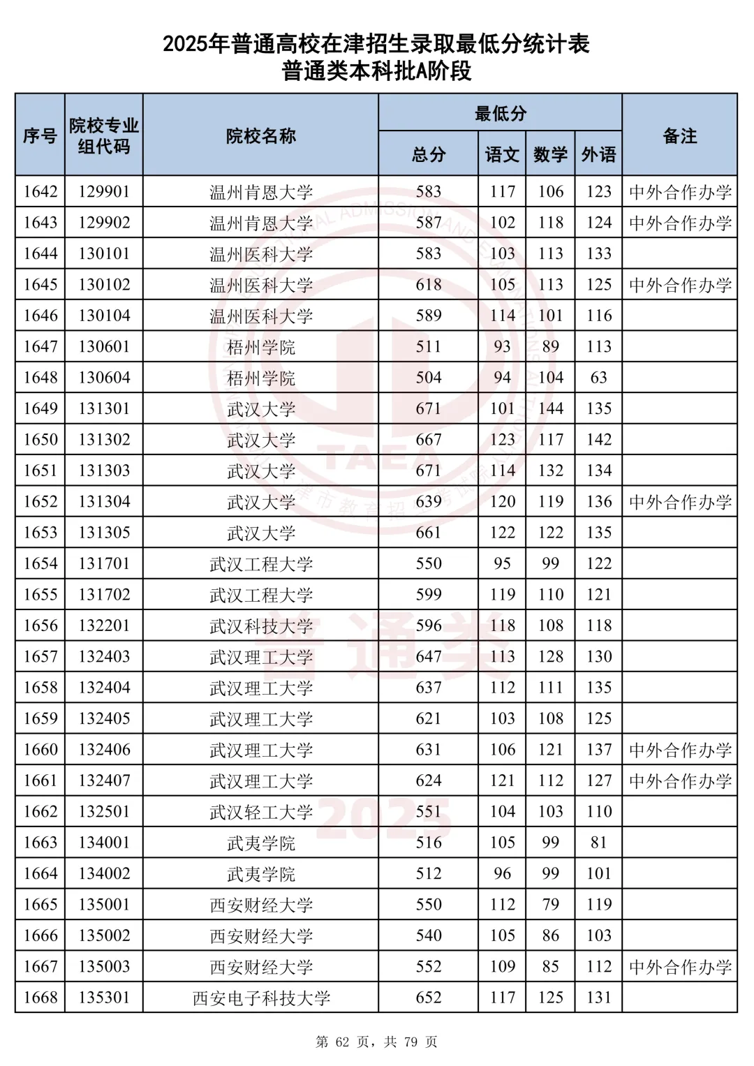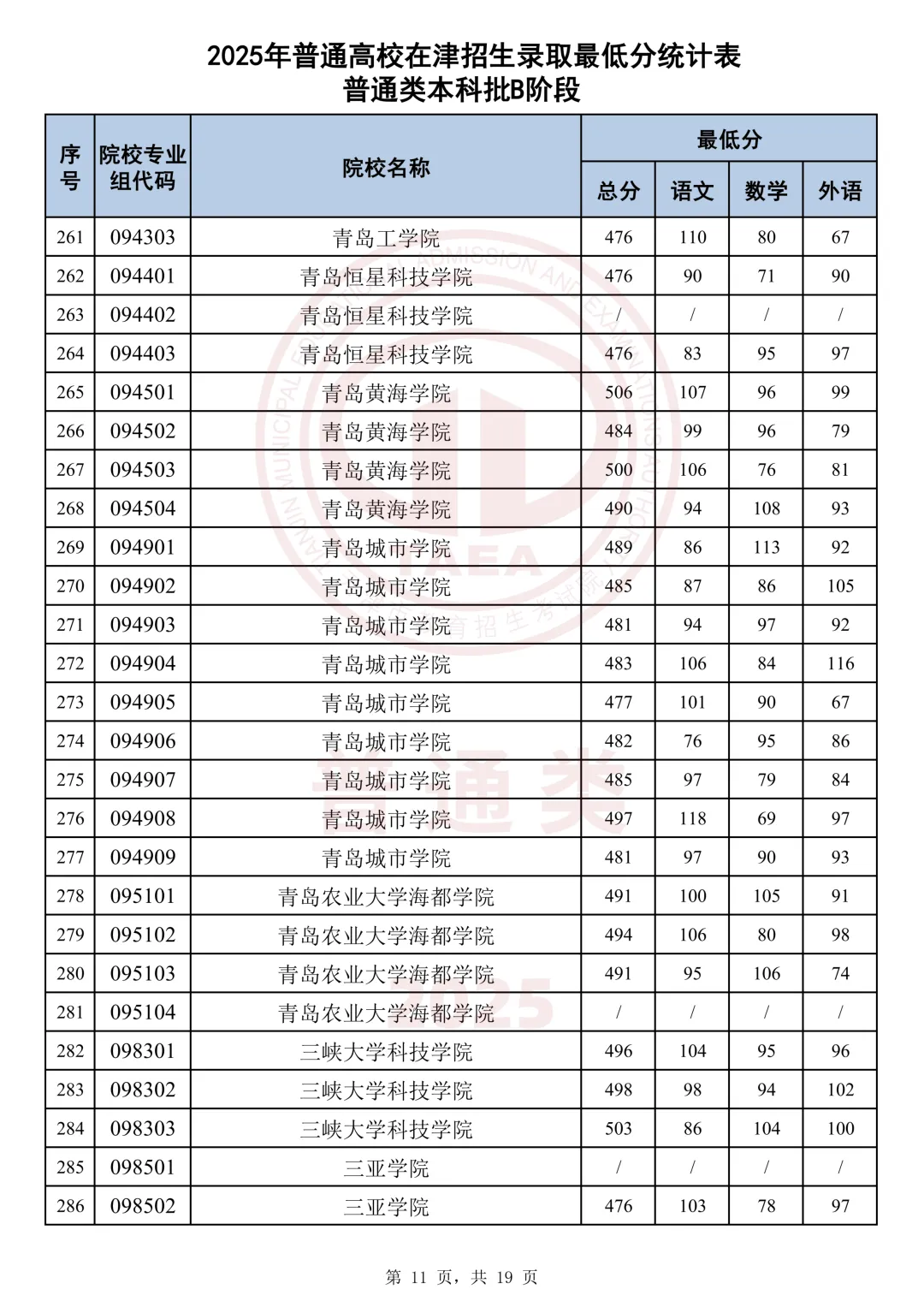 今天分享2025天津本科AB段最低分汇总