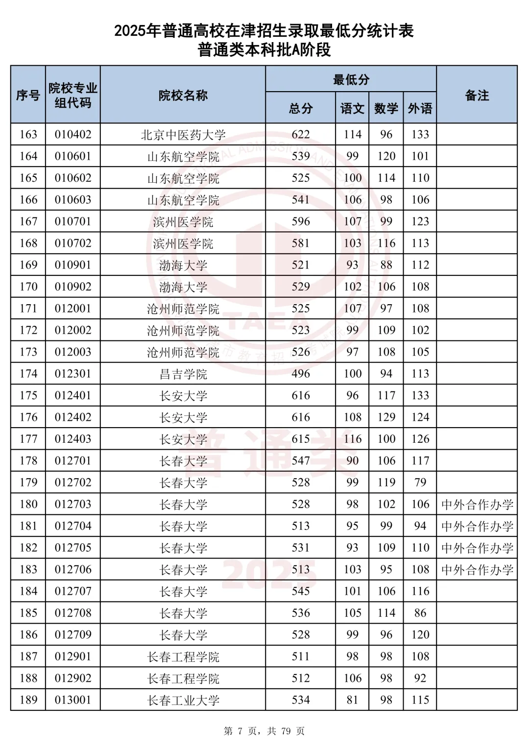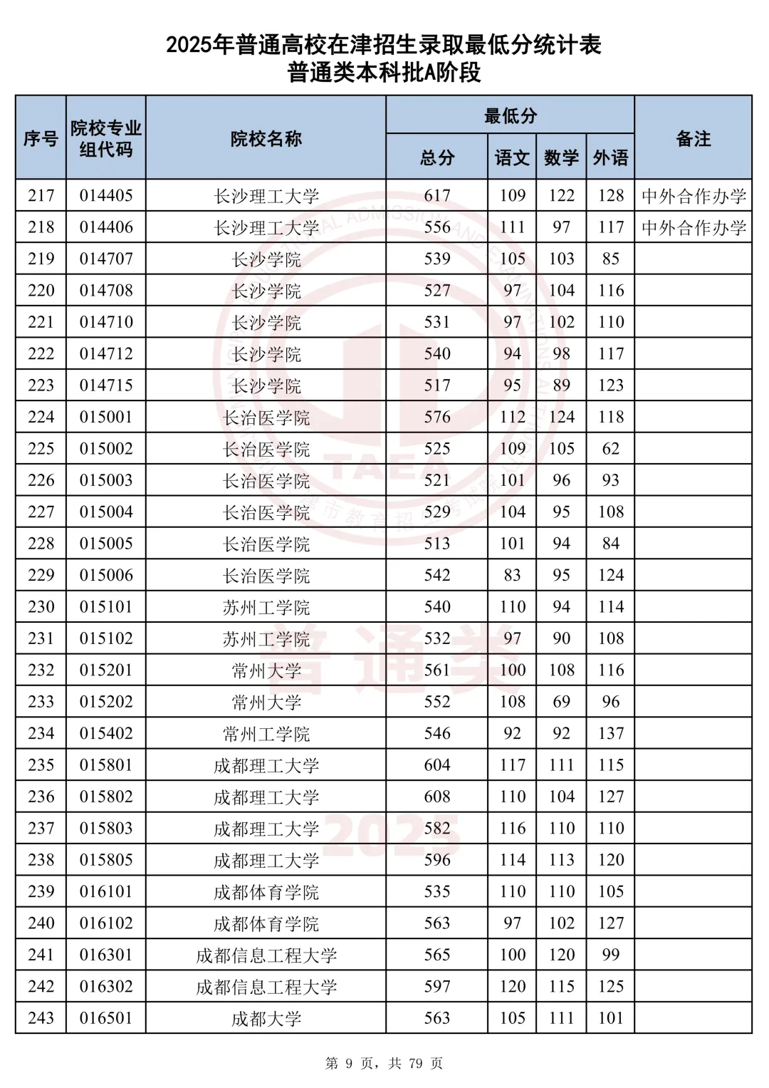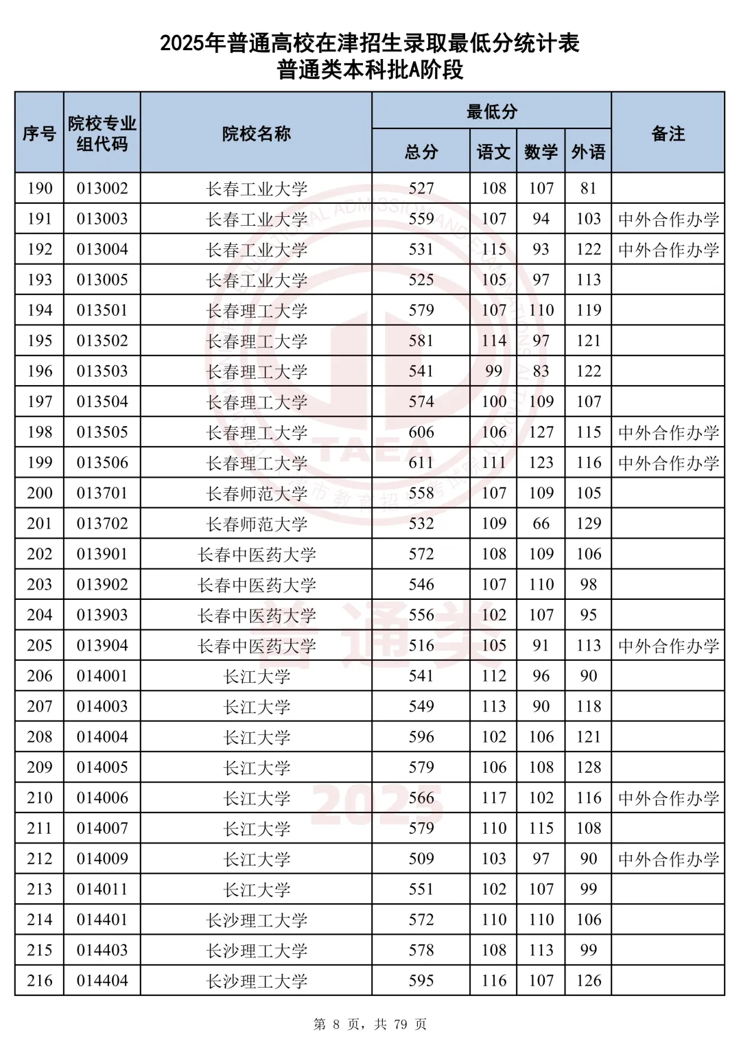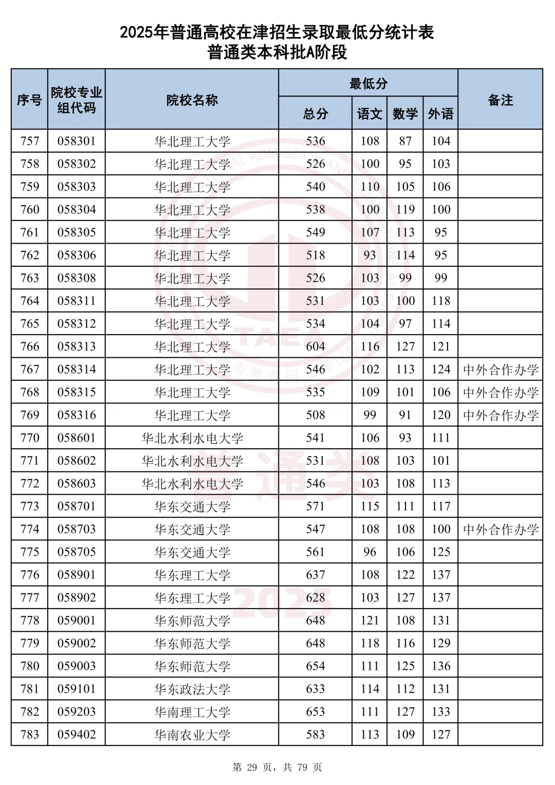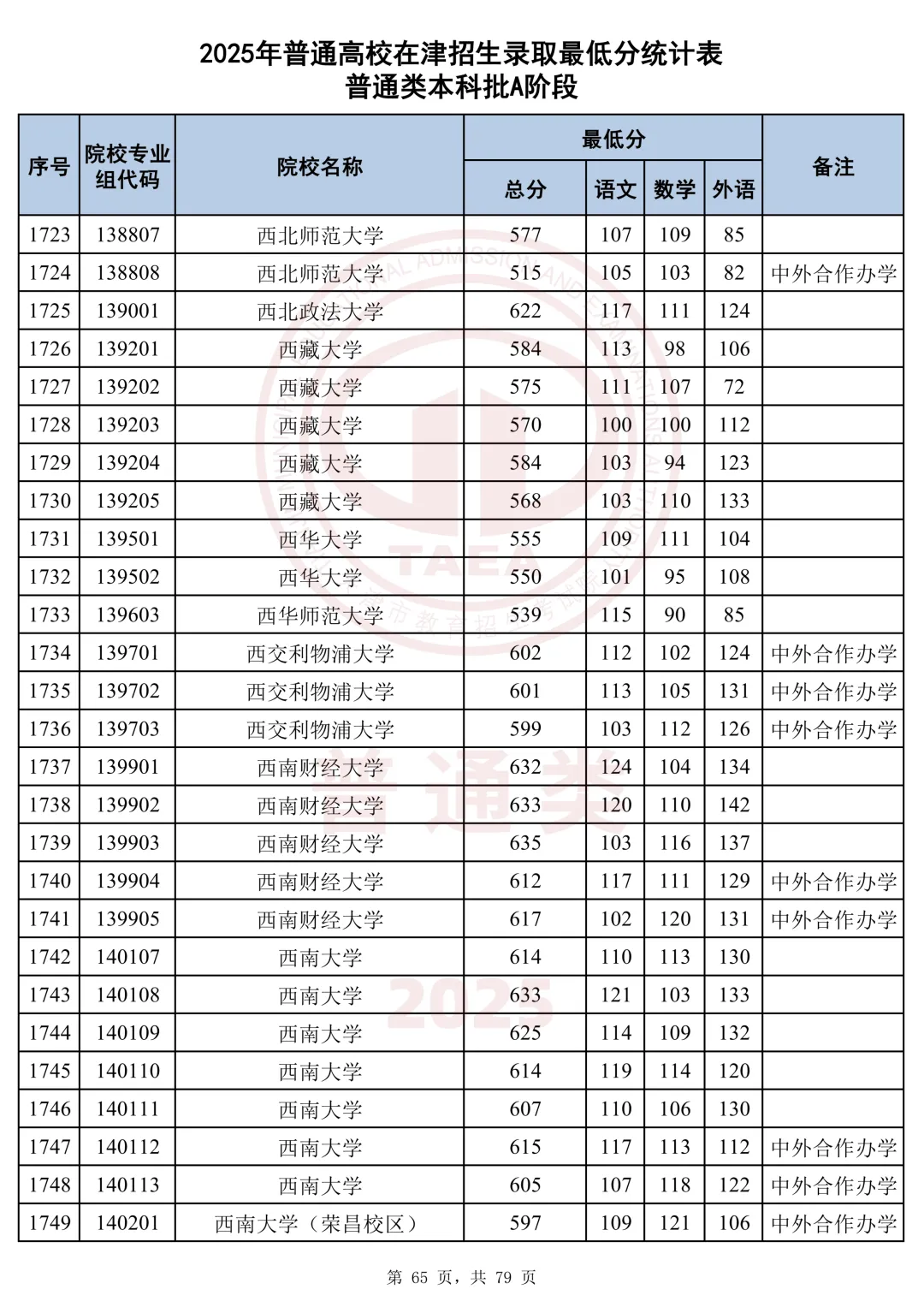 今天分享2025天津本科AB段最低分汇总