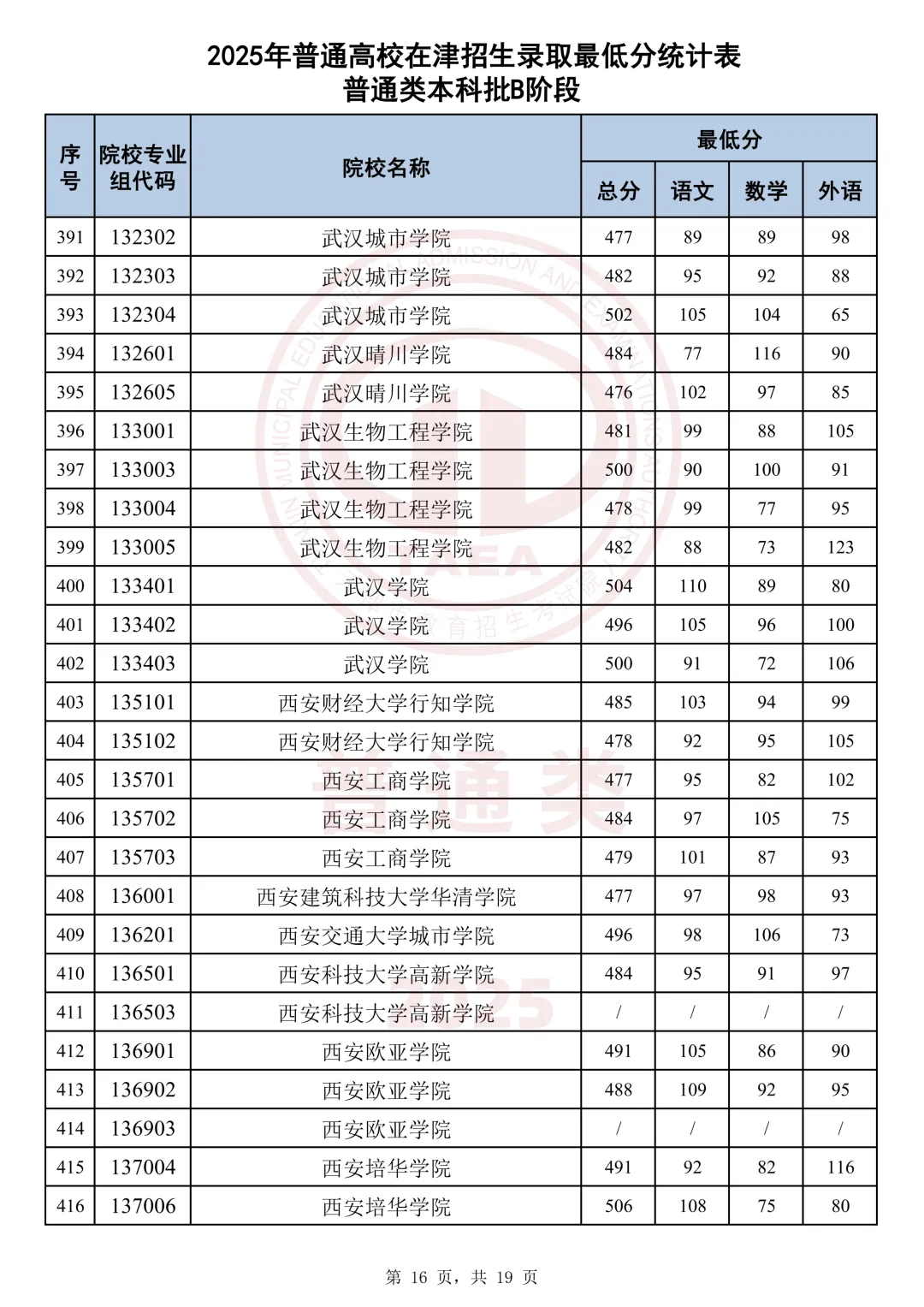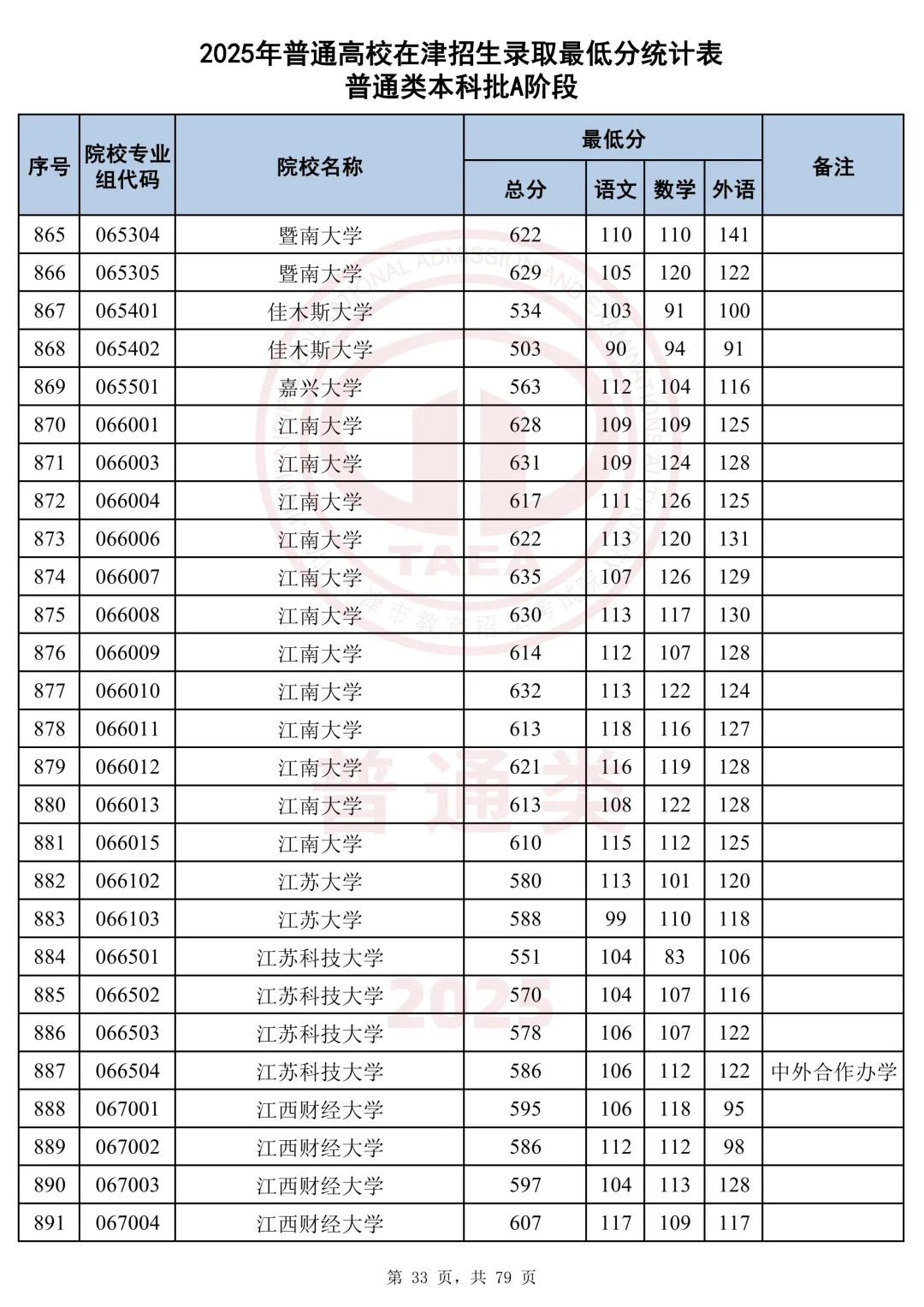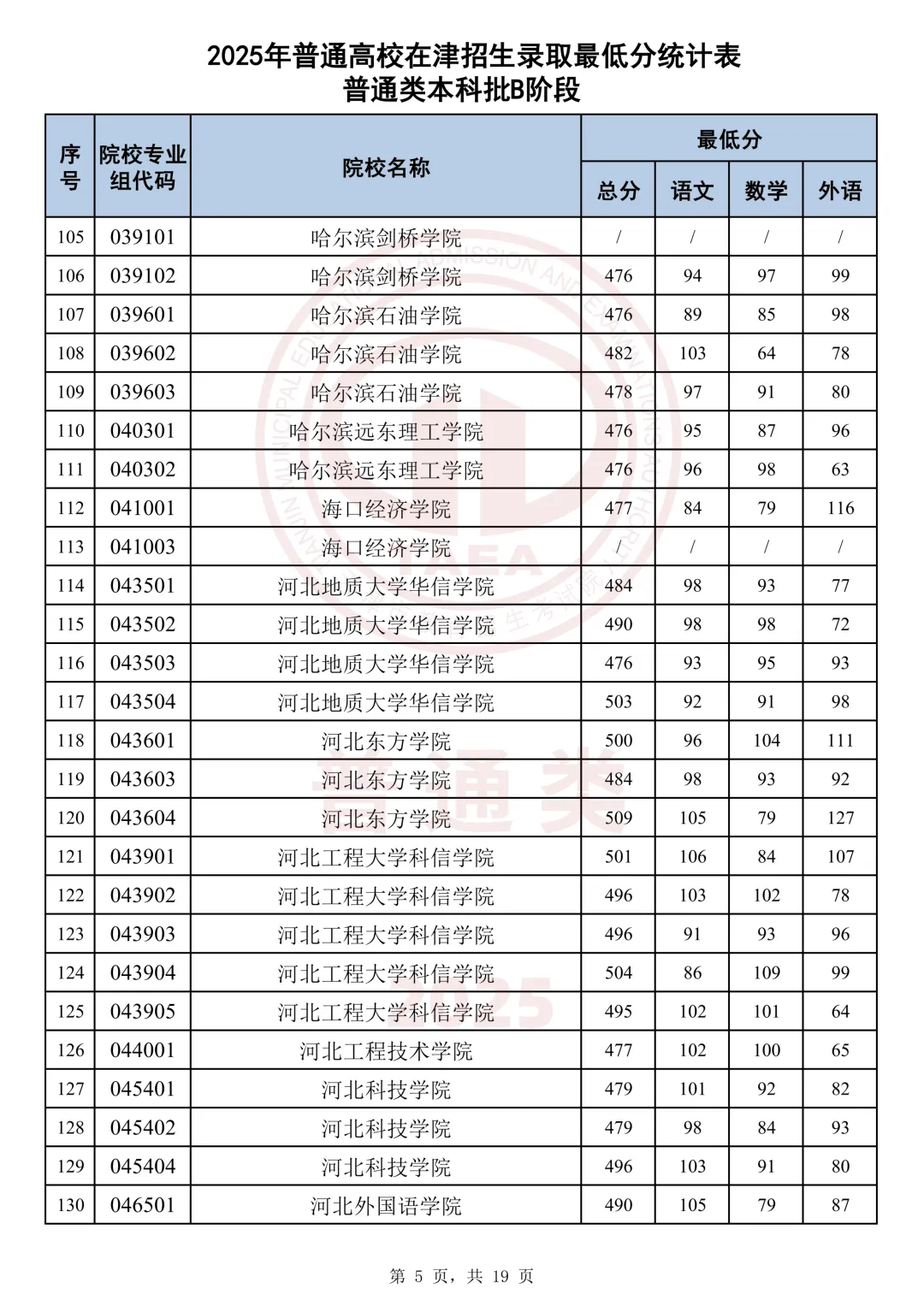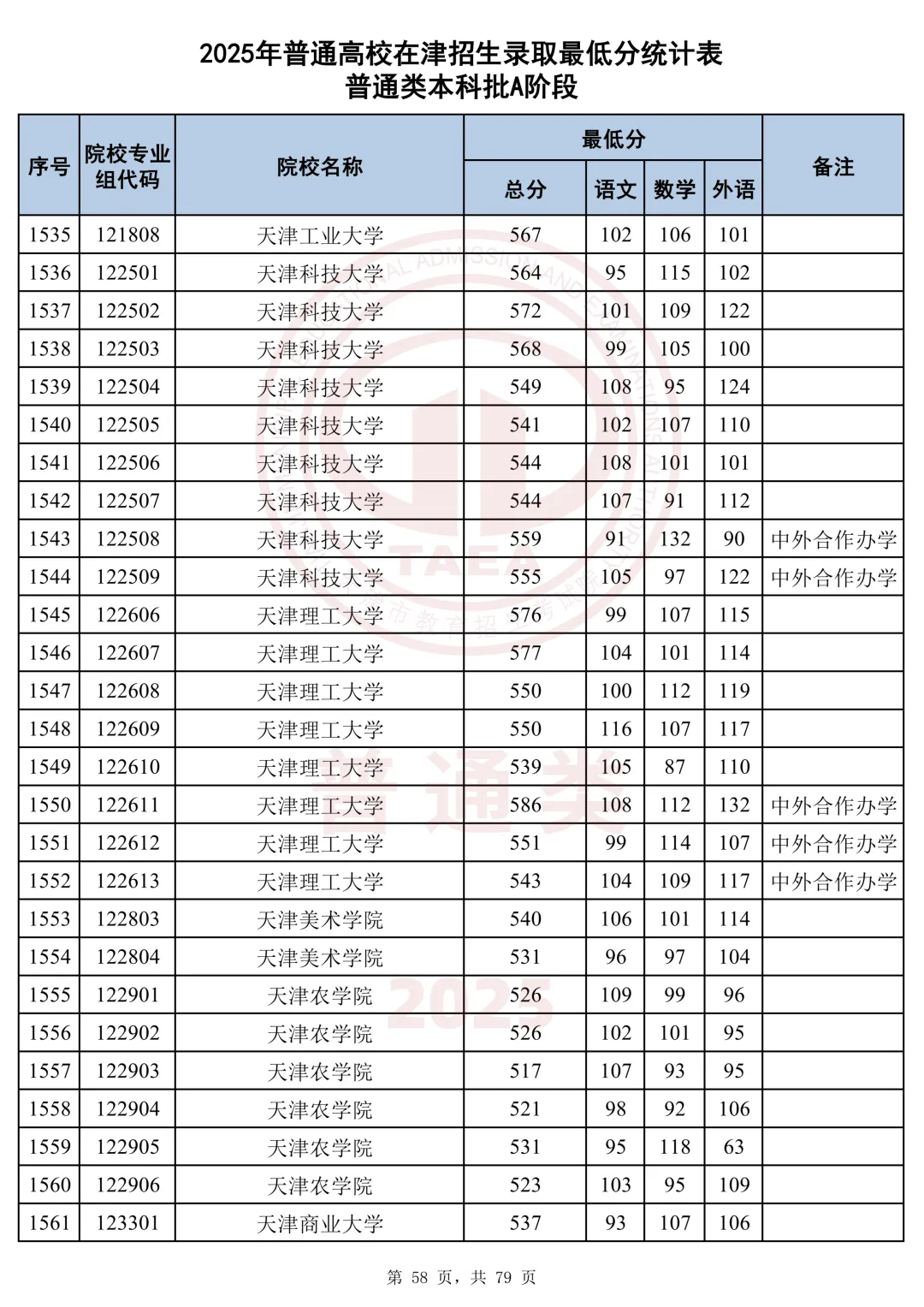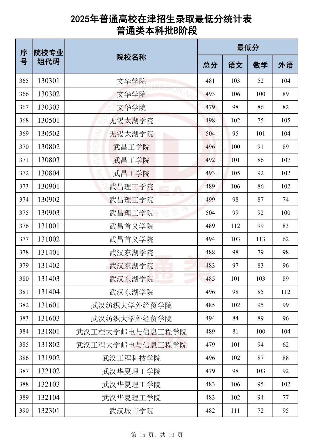 今天分享2025天津本科AB段最低分汇总