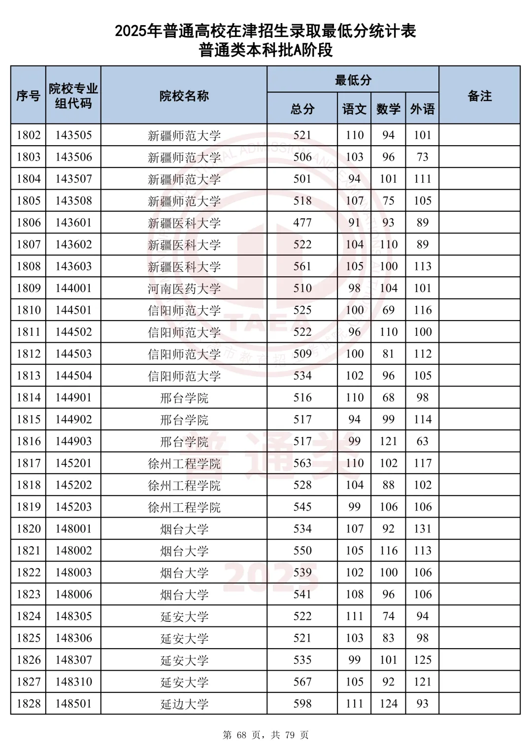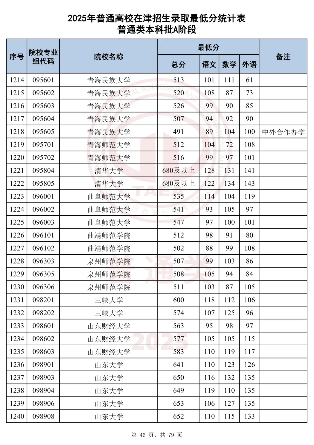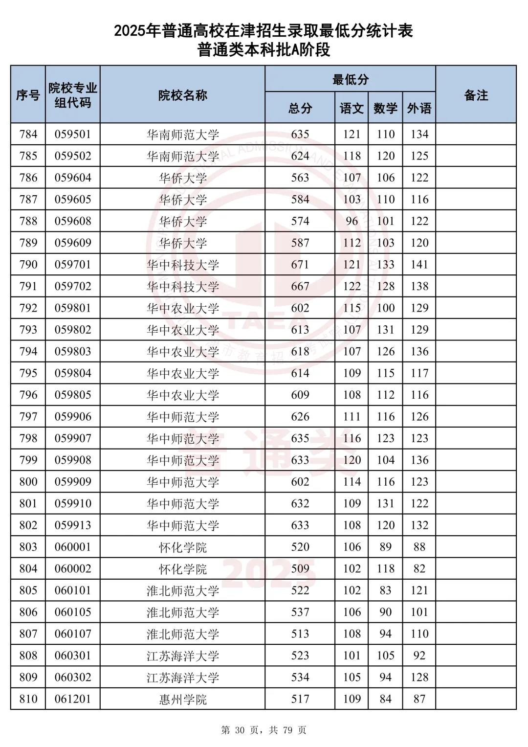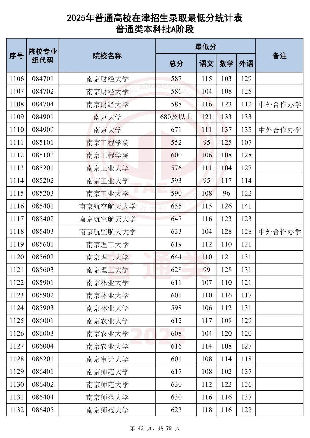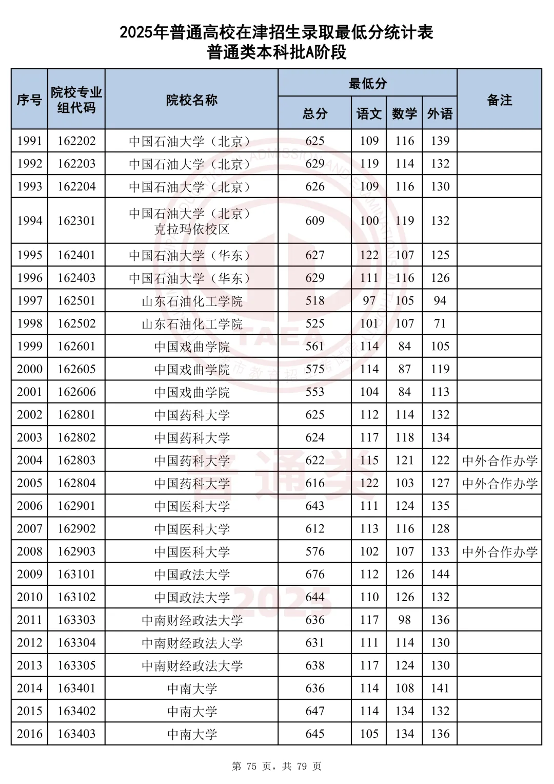 今天分享2025天津本科AB段最低分汇总