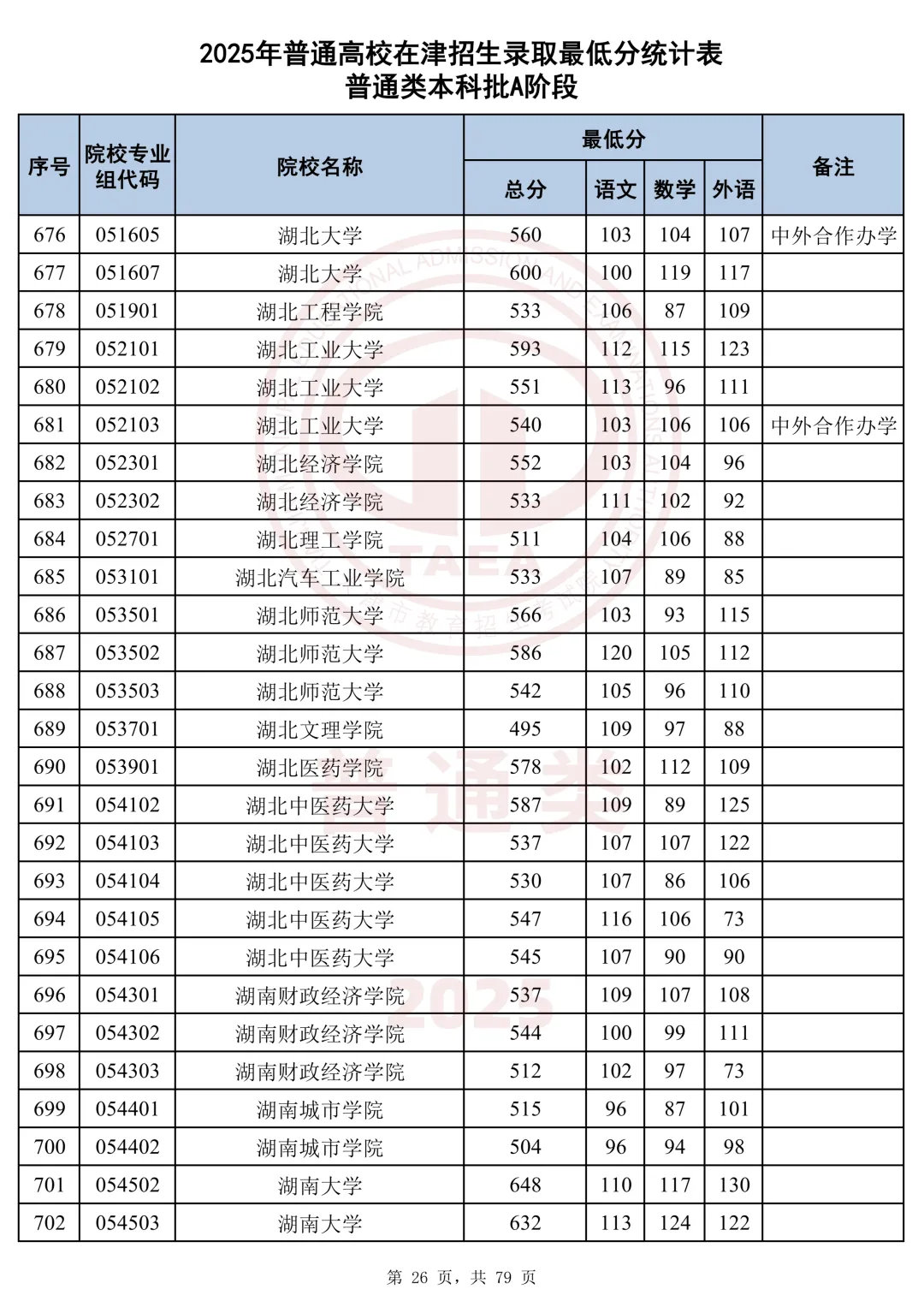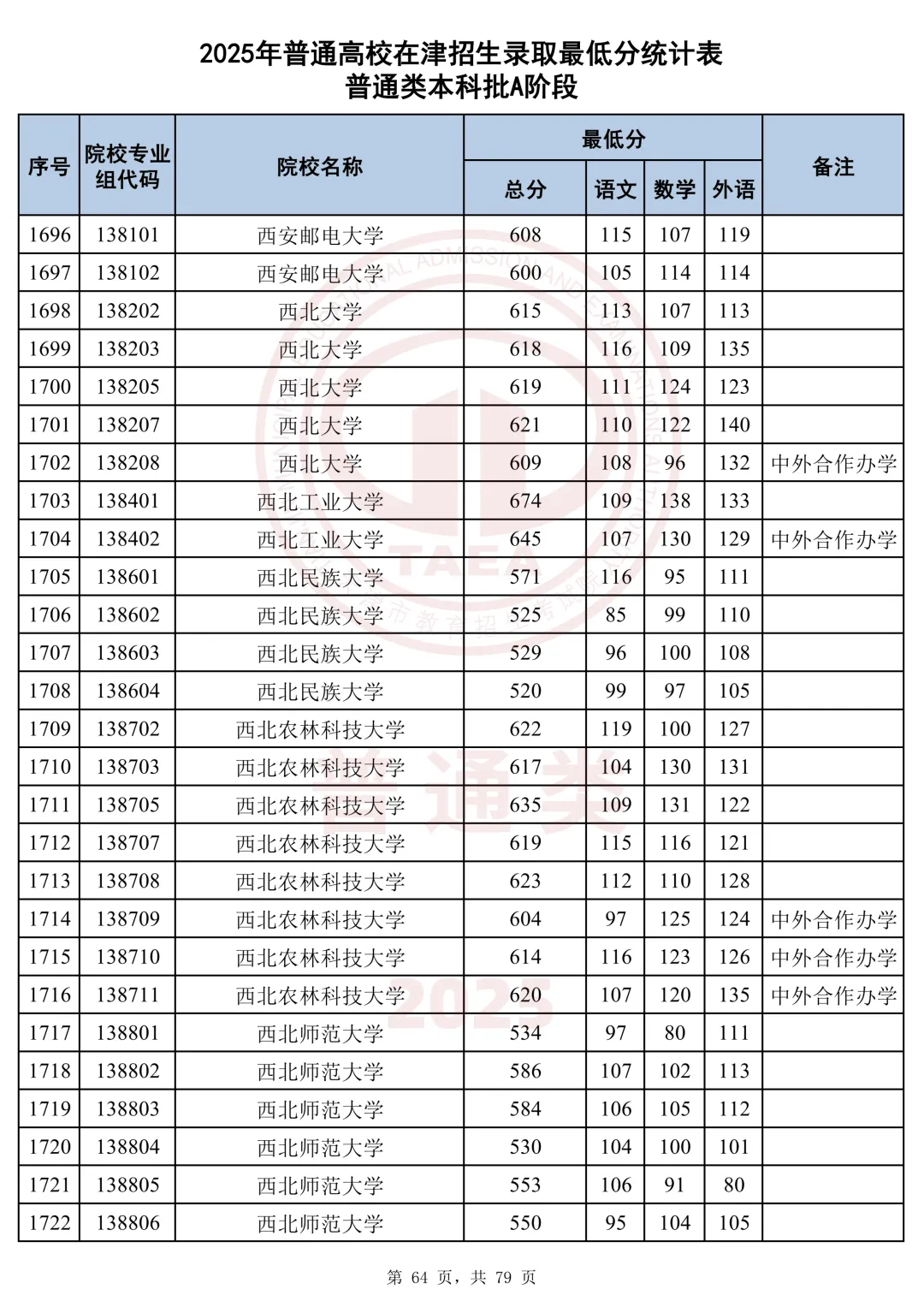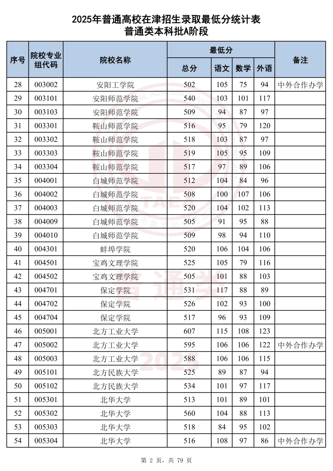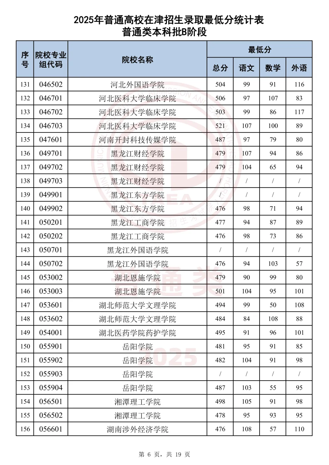 今天分享2025天津本科AB段最低分汇总