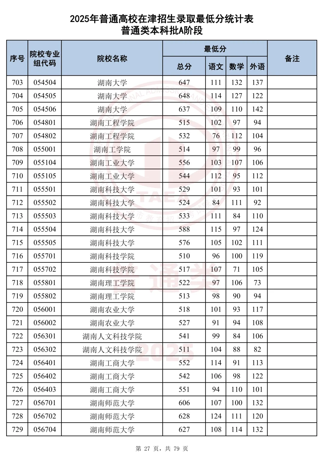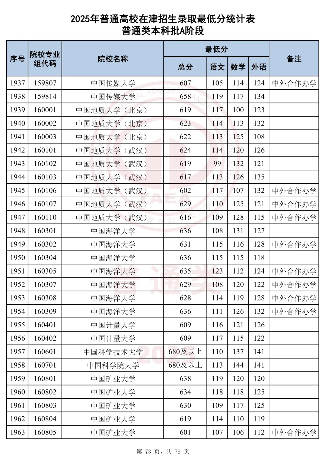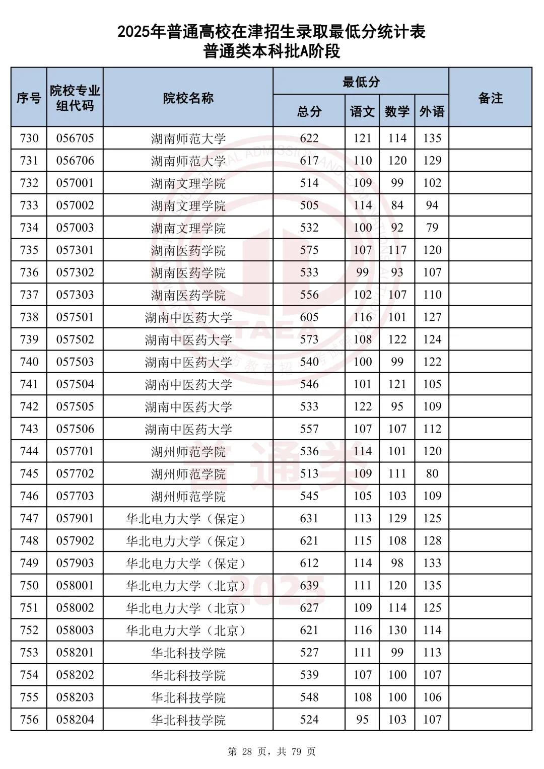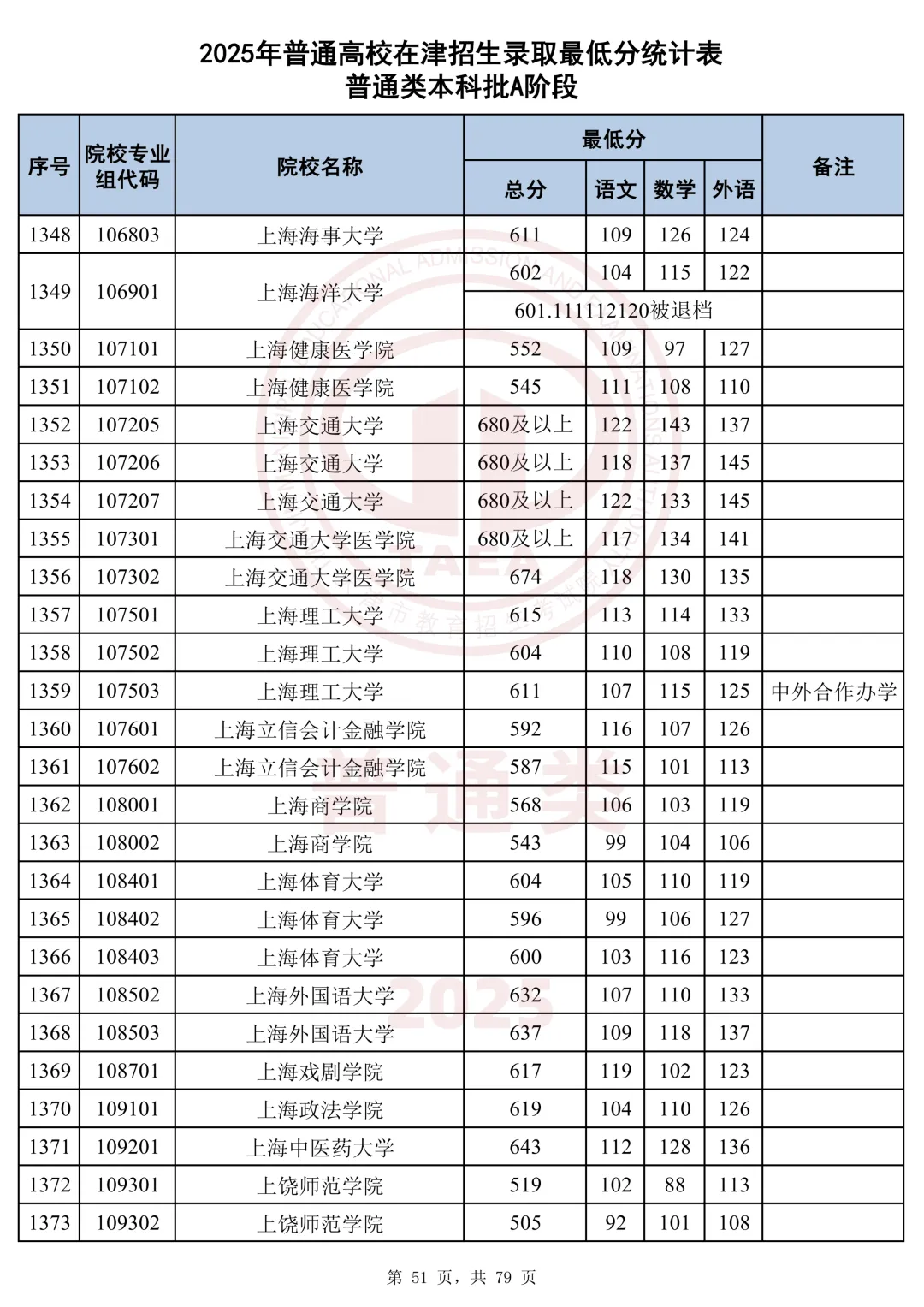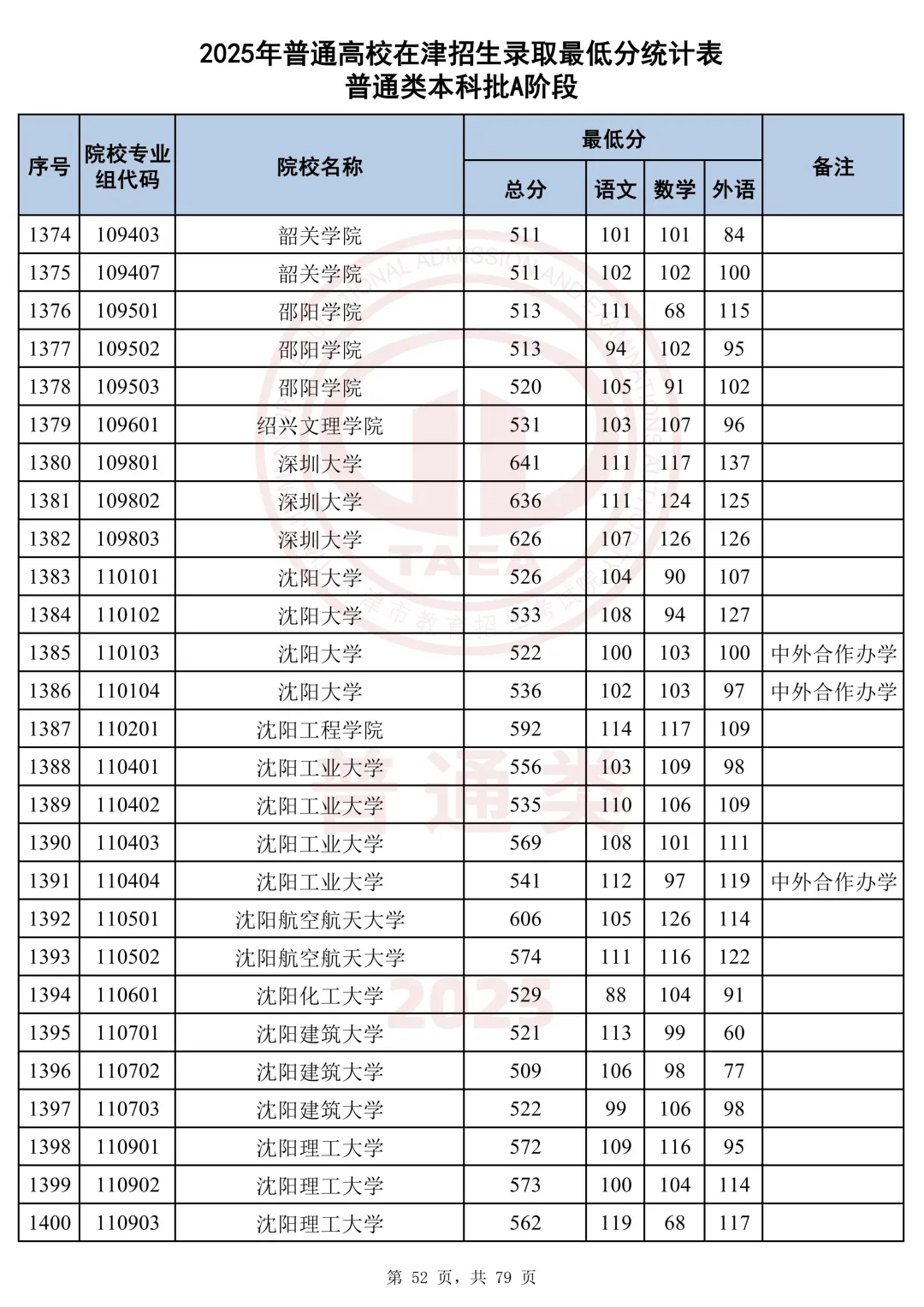 今天分享2025天津本科AB段最低分汇总