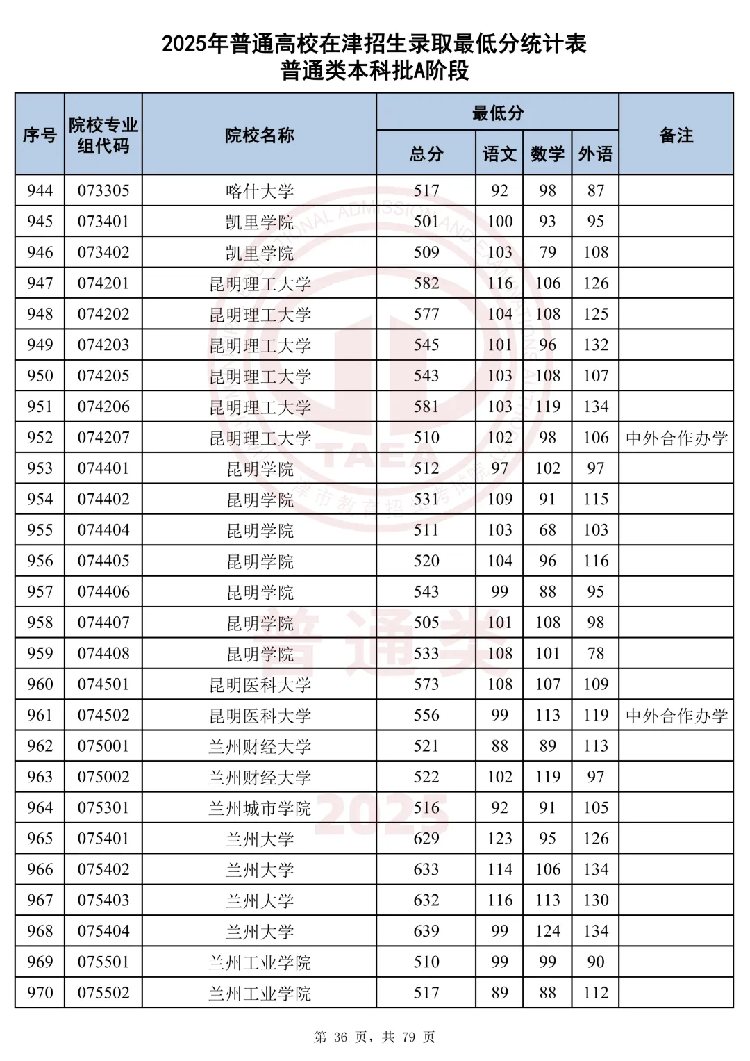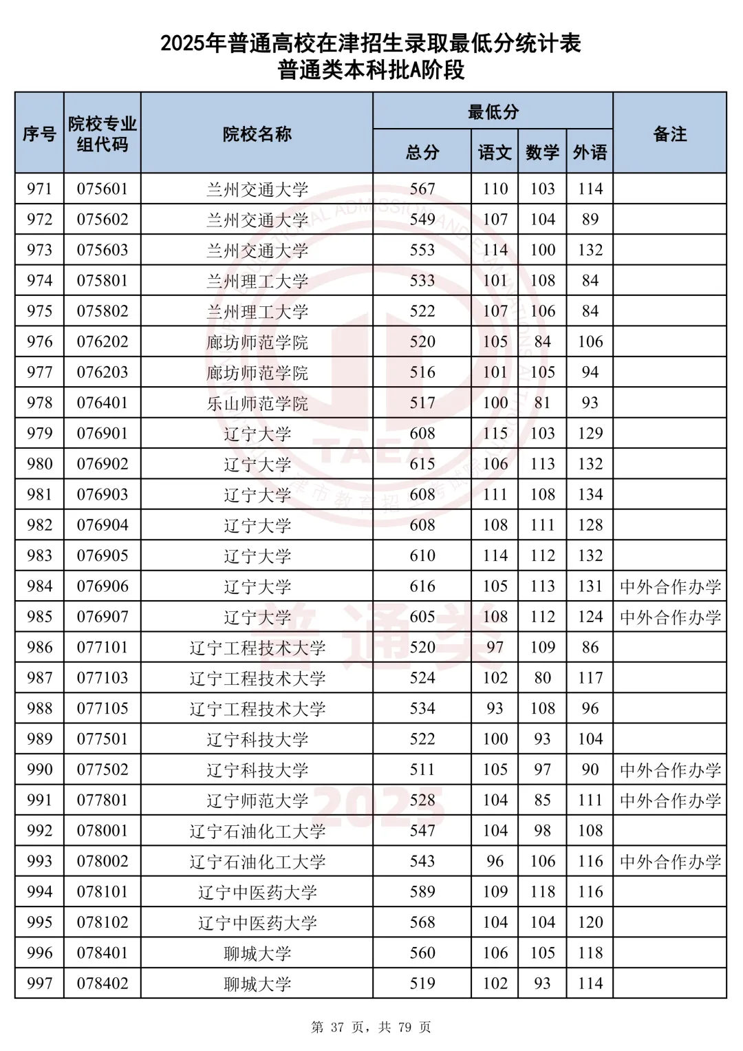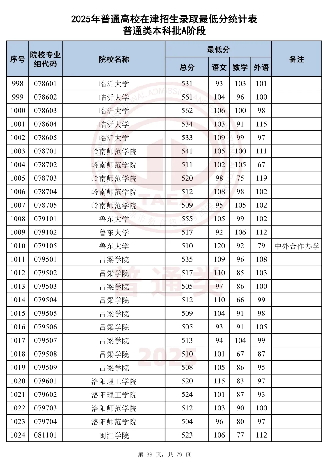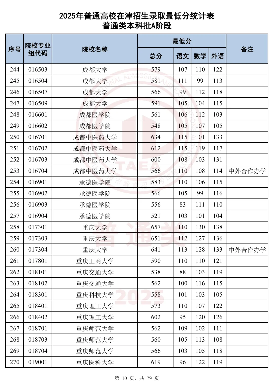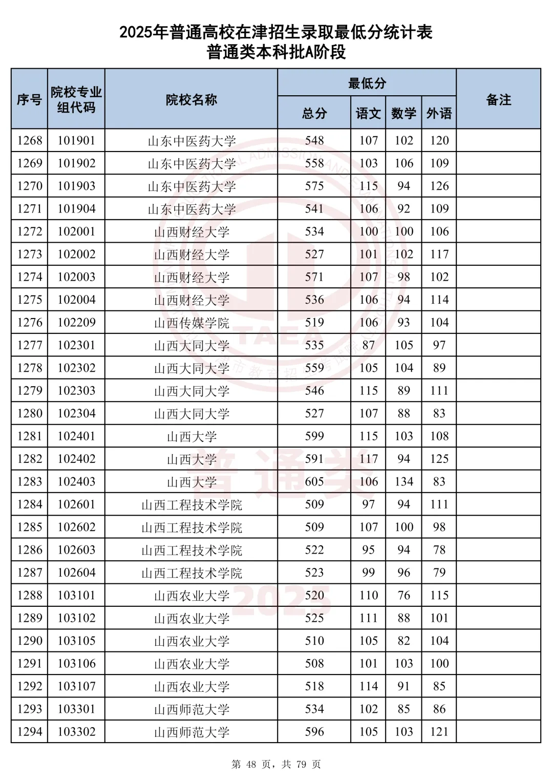 今天分享2025天津本科AB段最低分汇总