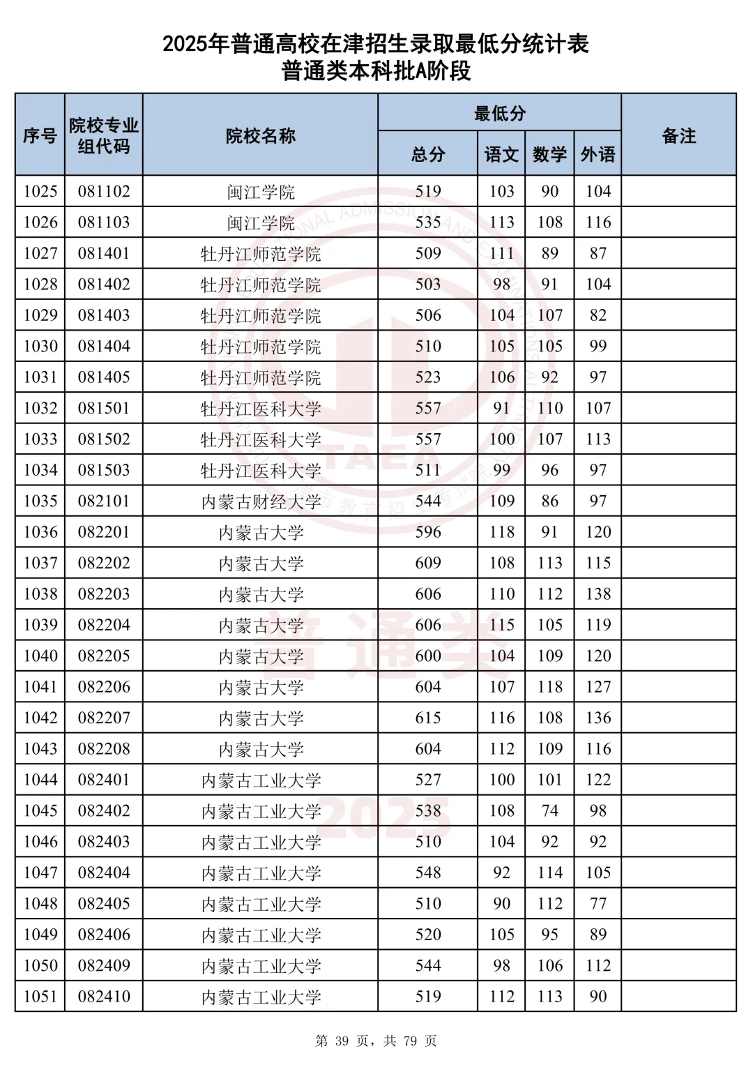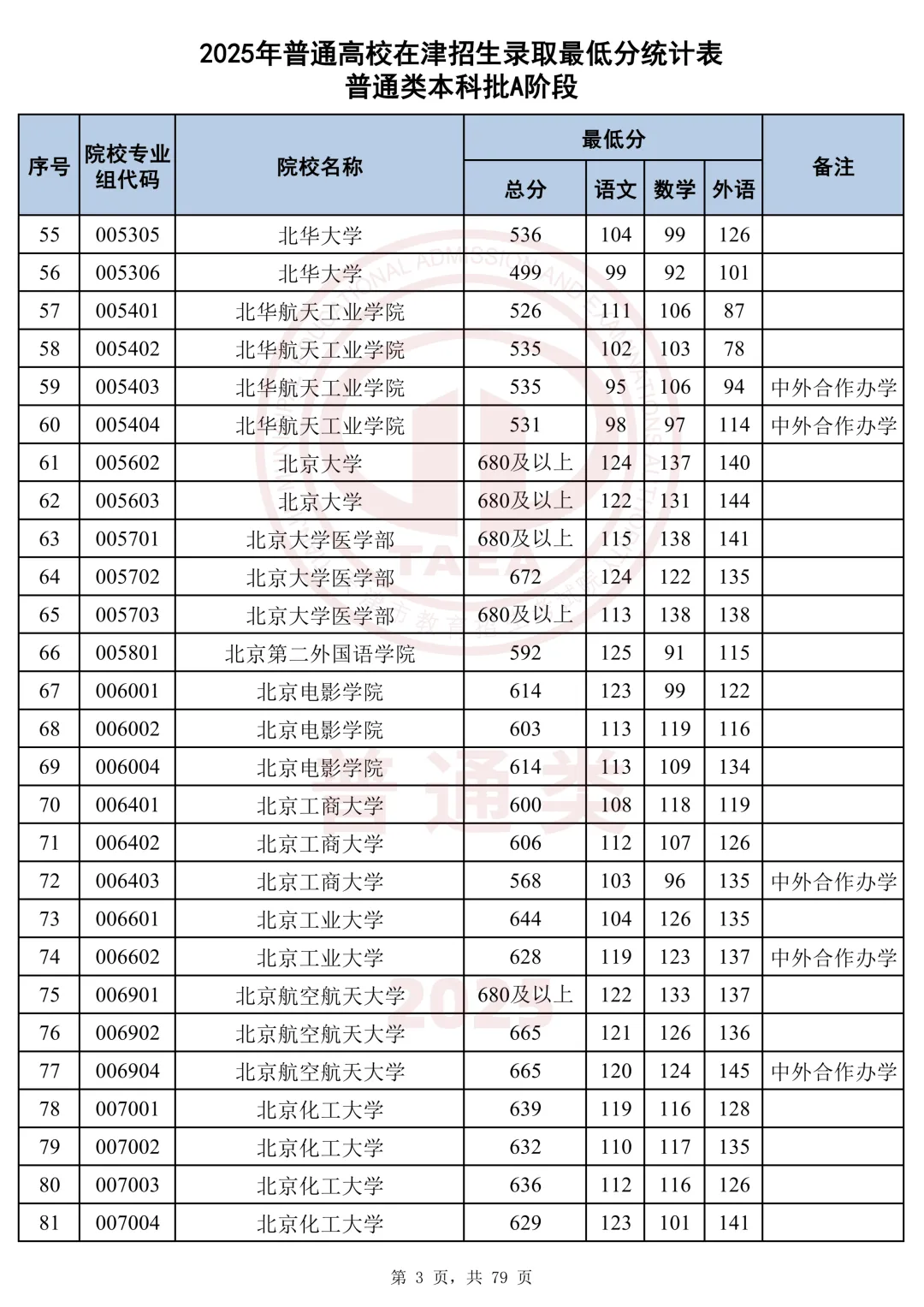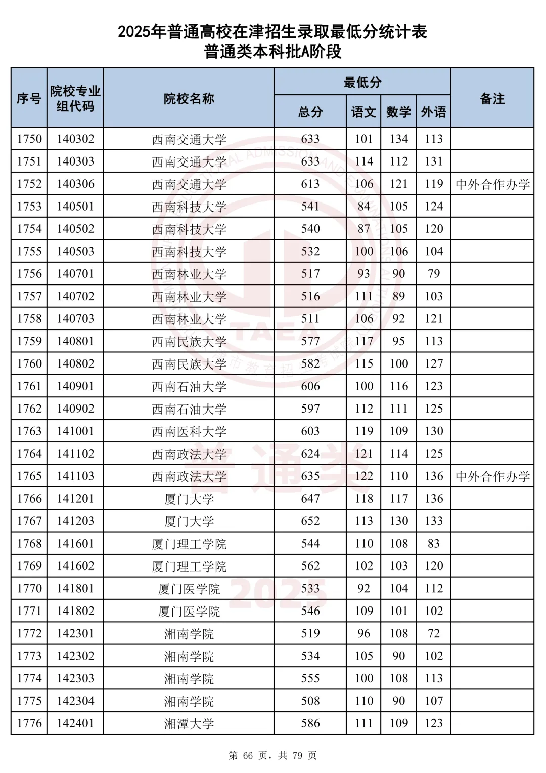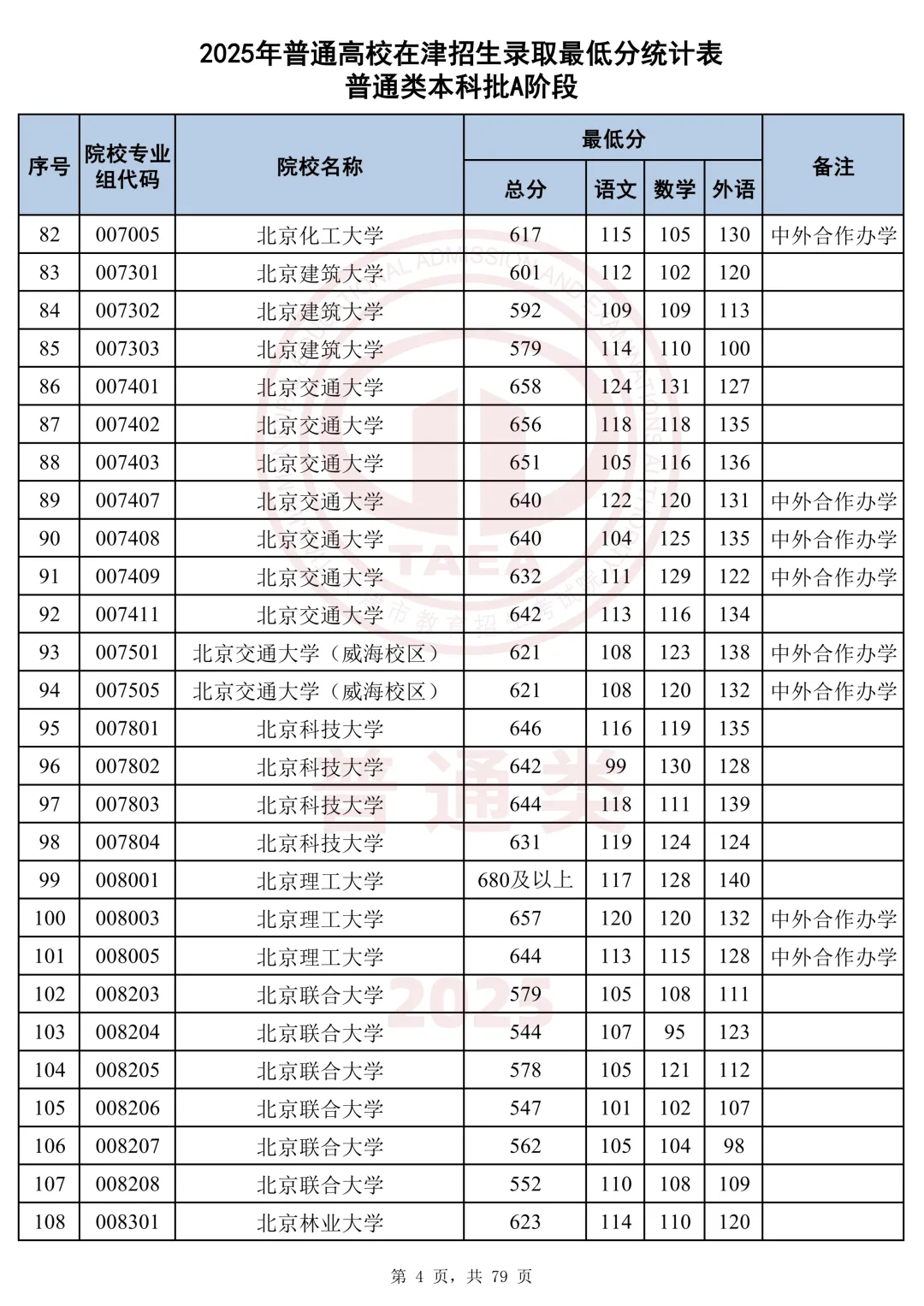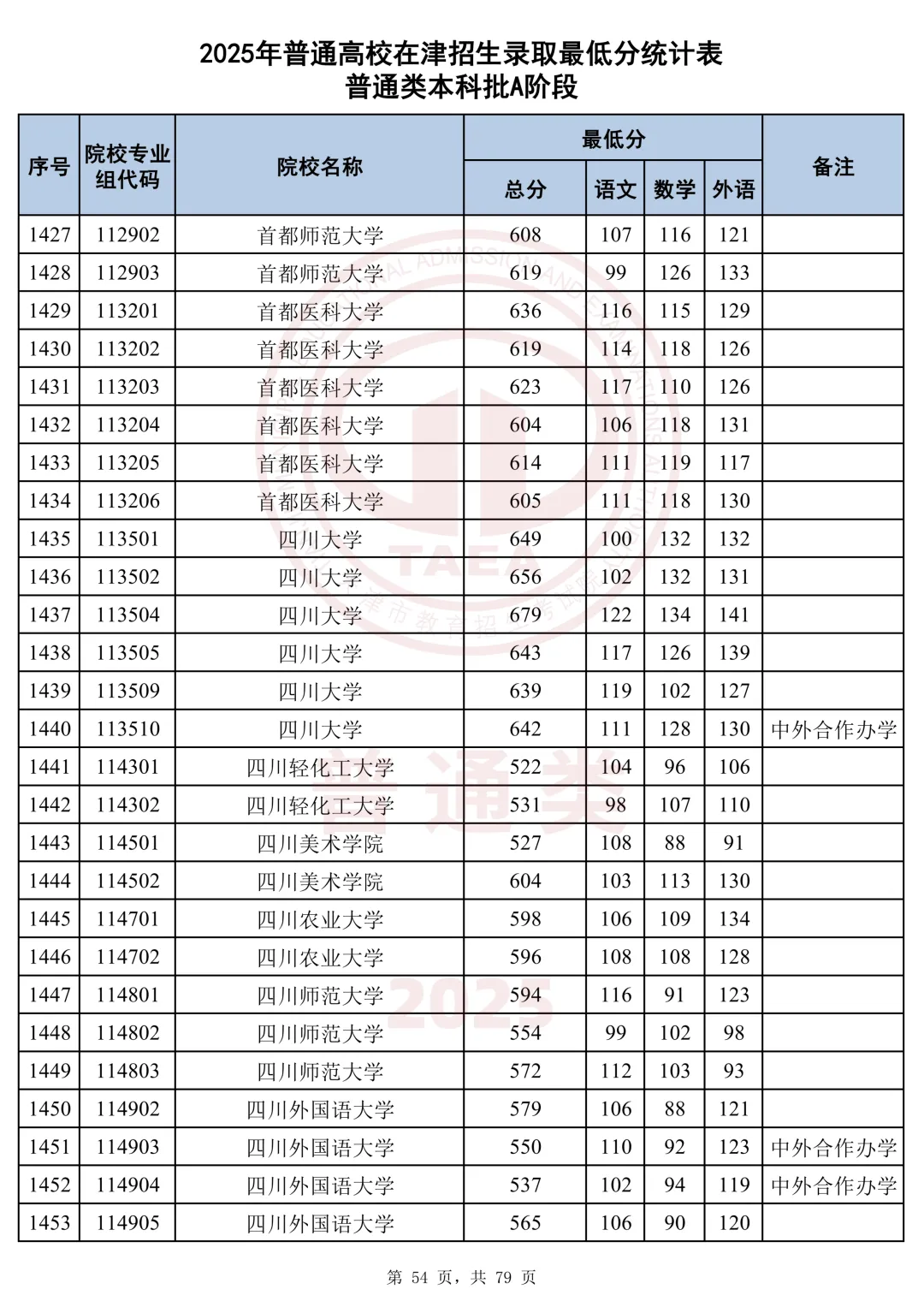 今天分享2025天津本科AB段最低分汇总