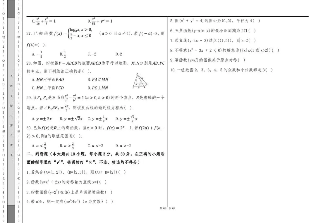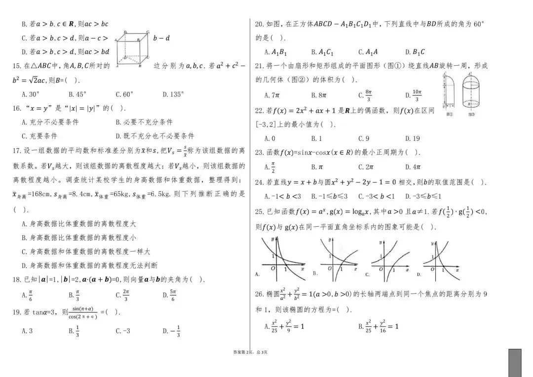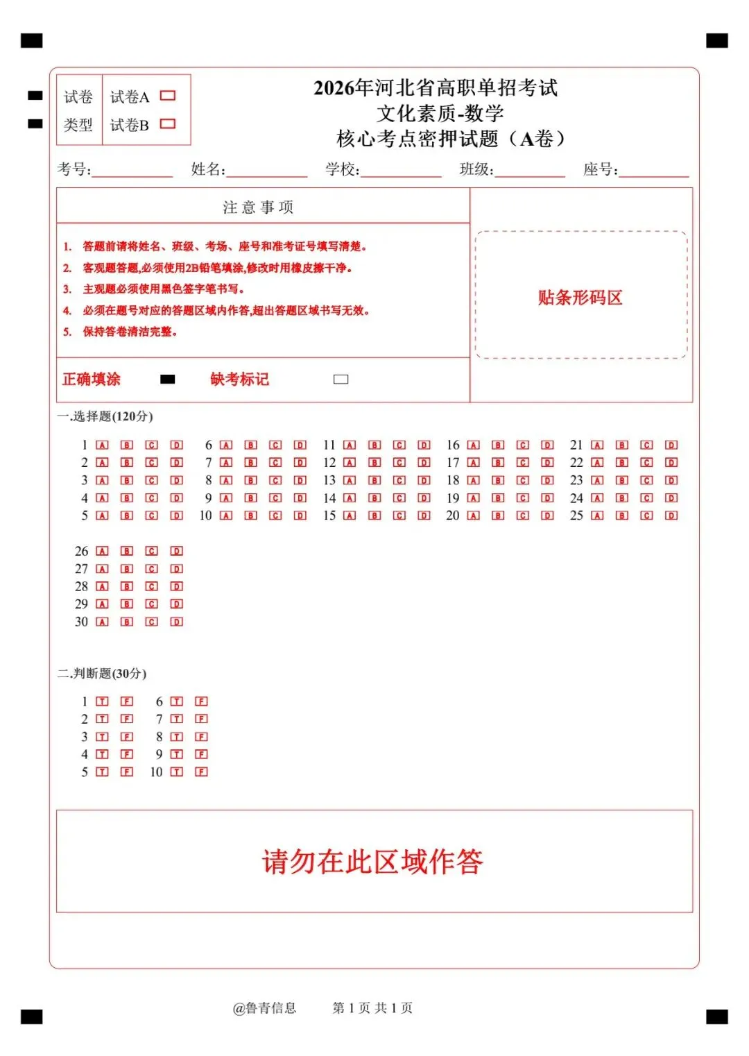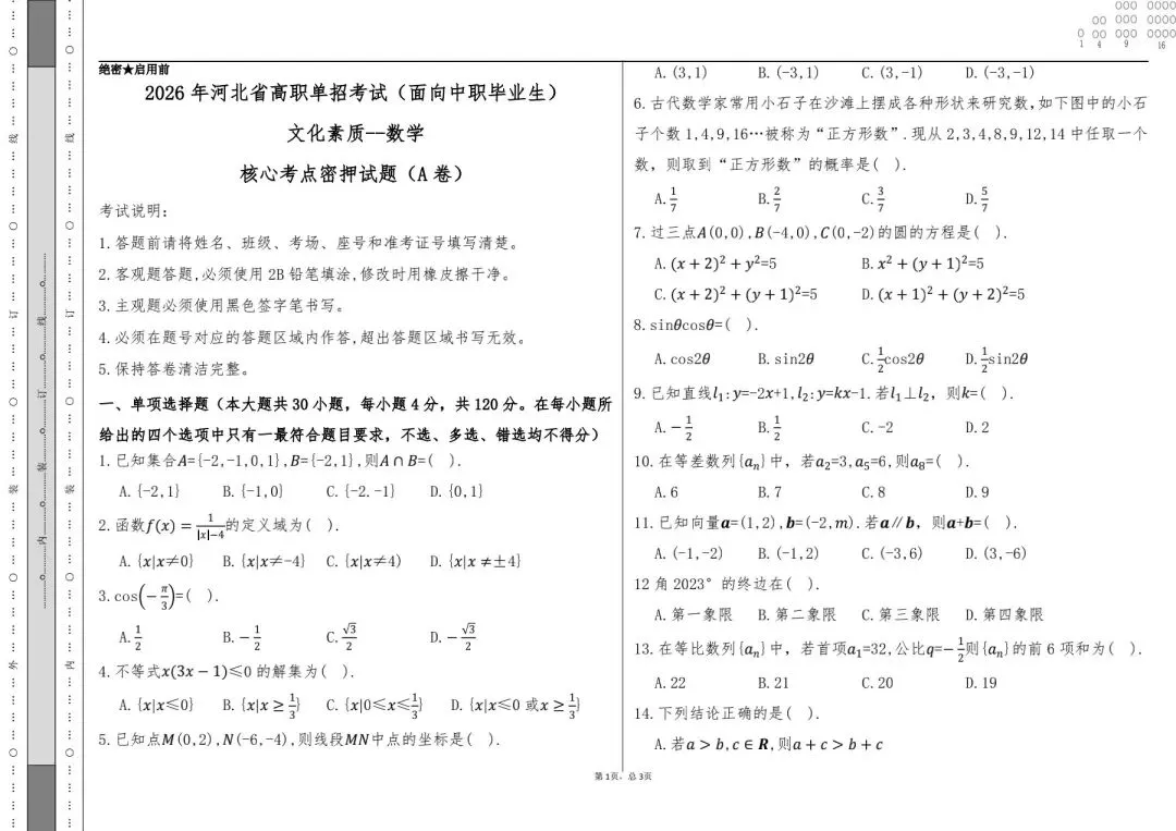 【数学】2026年河北省高职单招考试—核心考点密押试题(A卷)