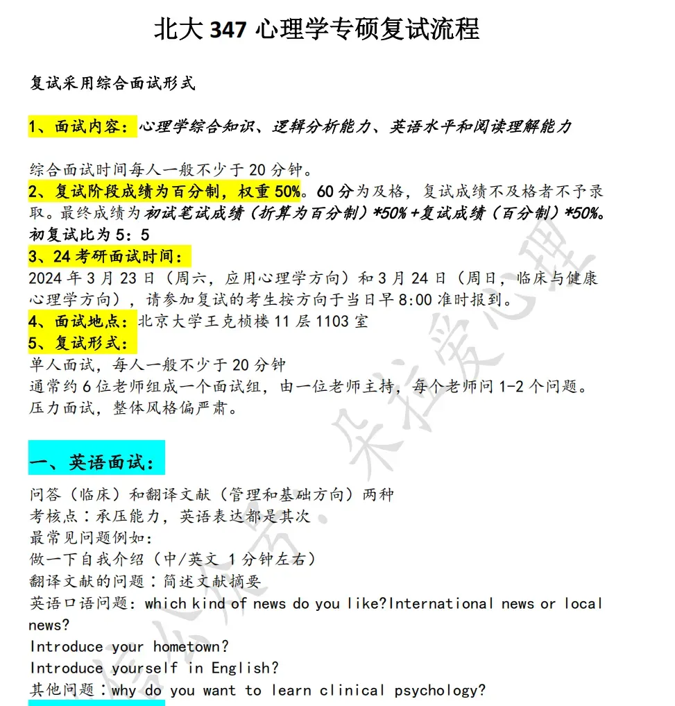 一、心理学考研各院校复试流程及复试经验免费领!