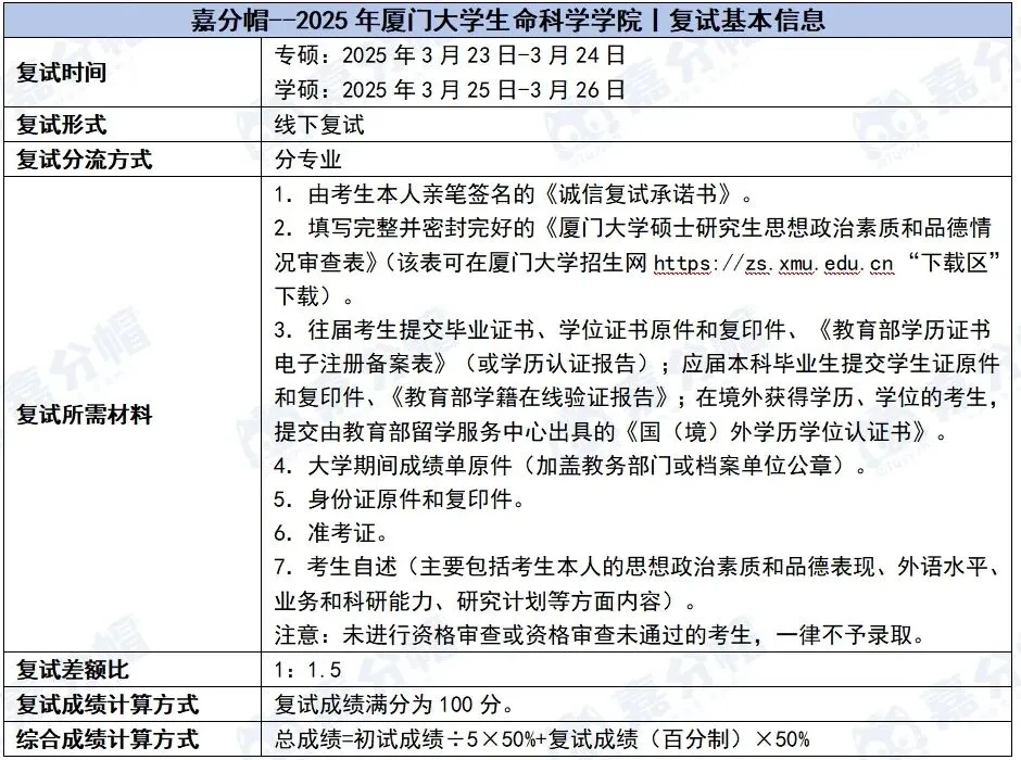 26生物考研|厦门大学复试指南(内含复试全流程、招录数据、分数线、所需材料等)