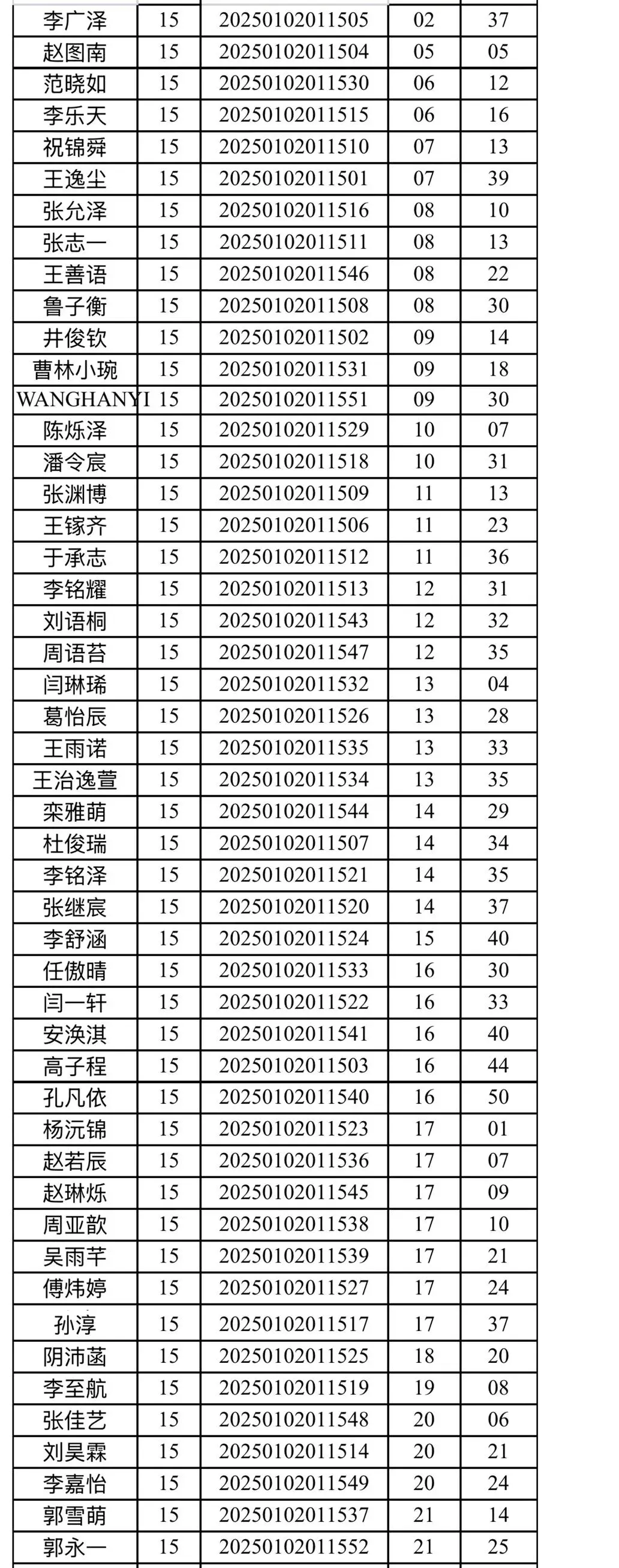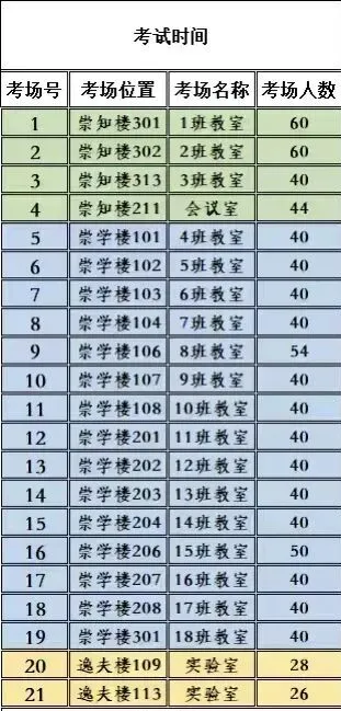 高一15班同学考场查询