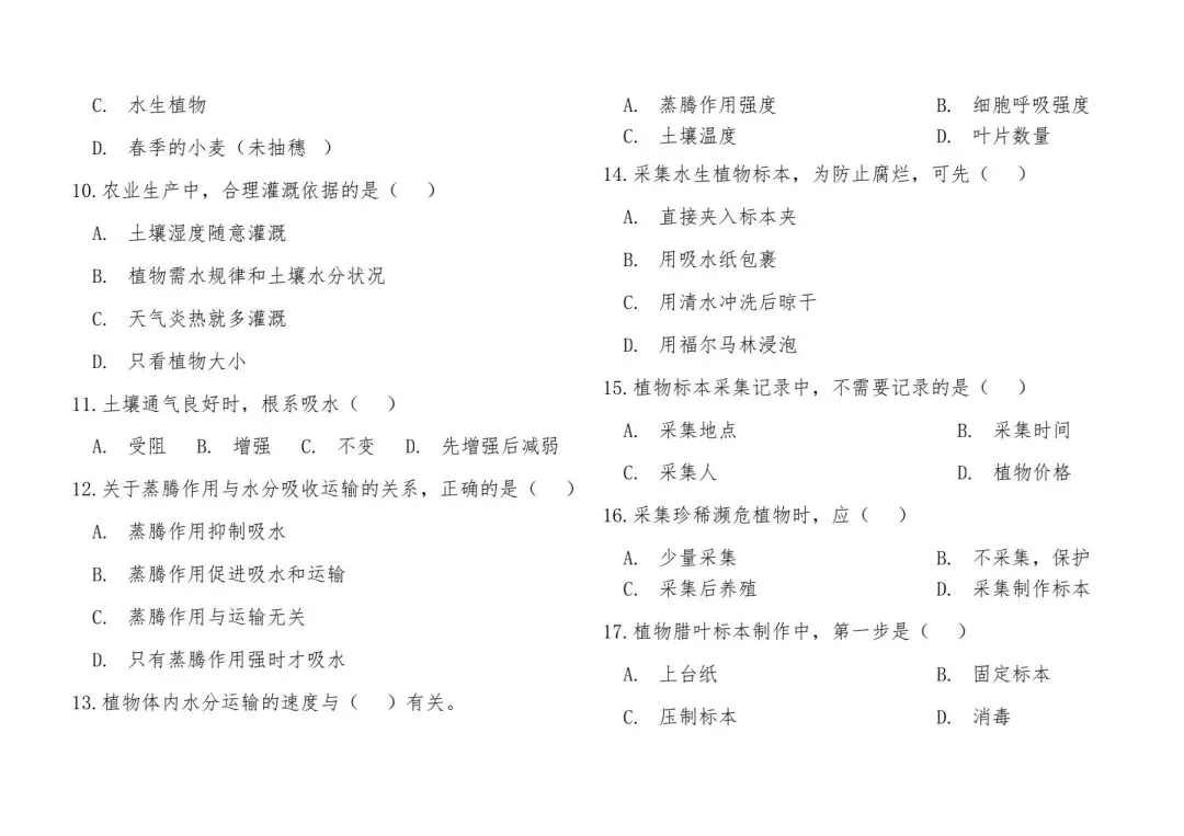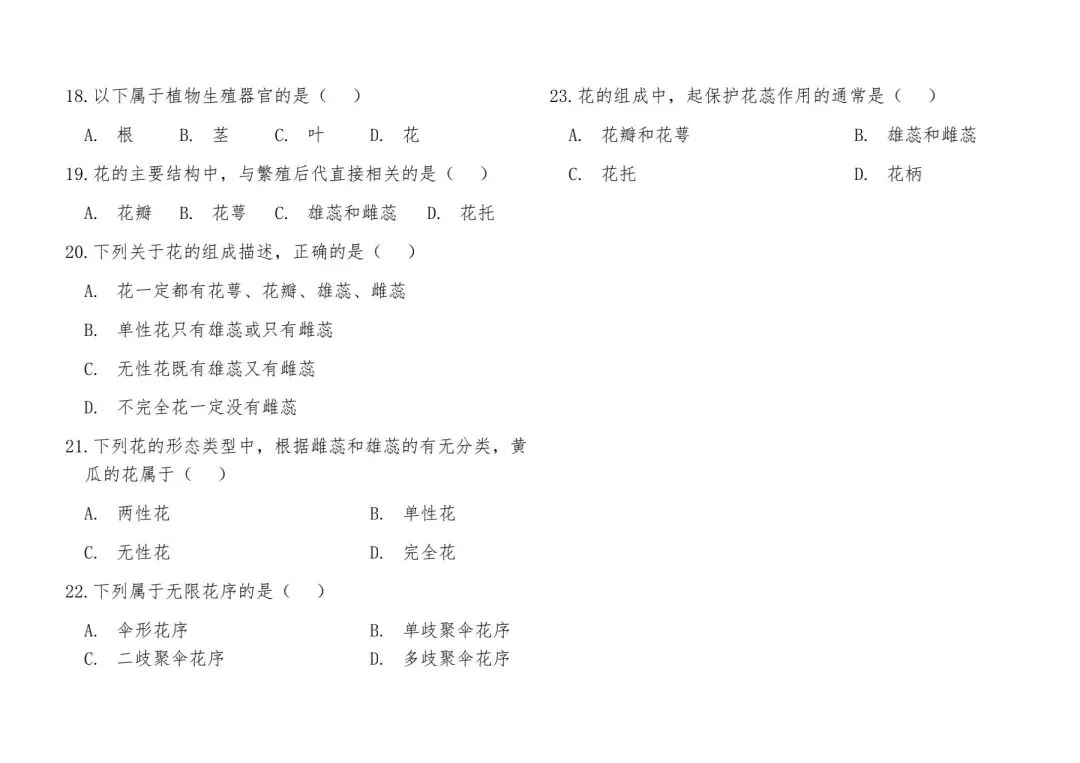 >【农林】河北省中等职业学校对口升学考试—《植物科学基础》练习题