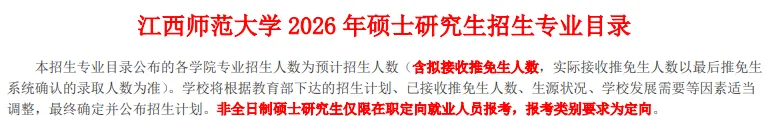 4.考生在各阶段应注意关注我校研究生招生网(http://yz.jxnu.edu.cn/),学校各类研招信息将在该网站及时发布!