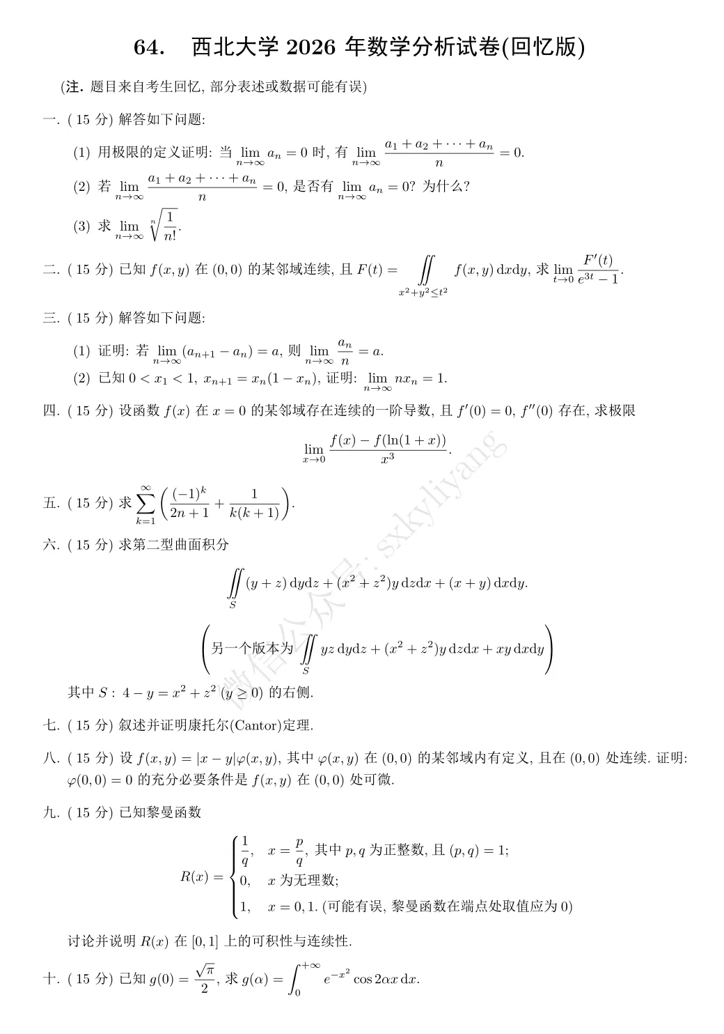 2026考研真题收集