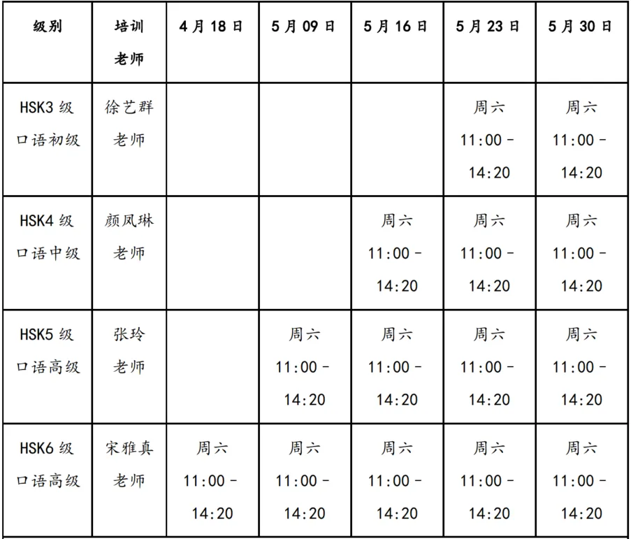 为给即将参加汉语水平考试的考生提供必要的学习支持,丹华将为HSK3至HSK6级和HSKK的考生提供考前培训课程,拟通过考前强化培训,使考生们巩固、扩充所学词语及汉语相应语法,熟悉HSK/HSKK各等级的考试题型,熟练运用听、说、读、写的技能完成汉语水平考试,并通过相应等级的考试。