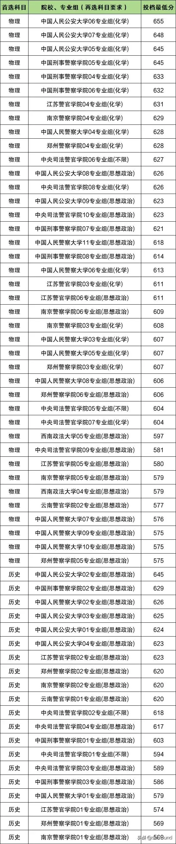 (2)中国人民警察大学:物理类575分、历史类579分;