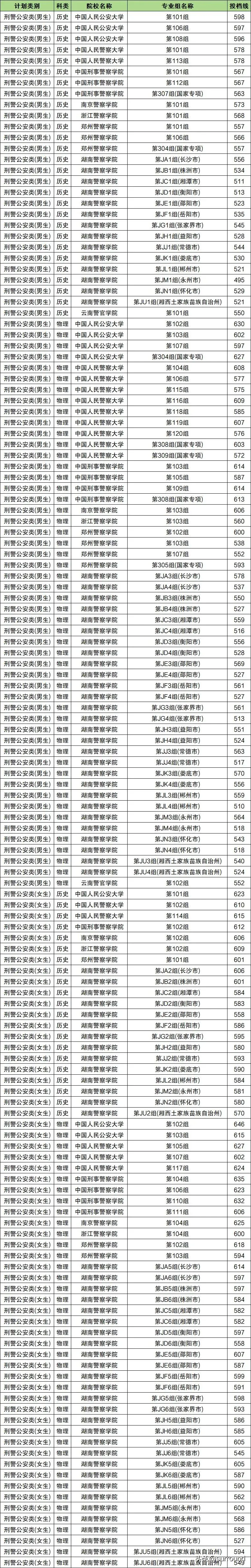 下面是2025年湖南公安警校录取分数线一览表(完整版):