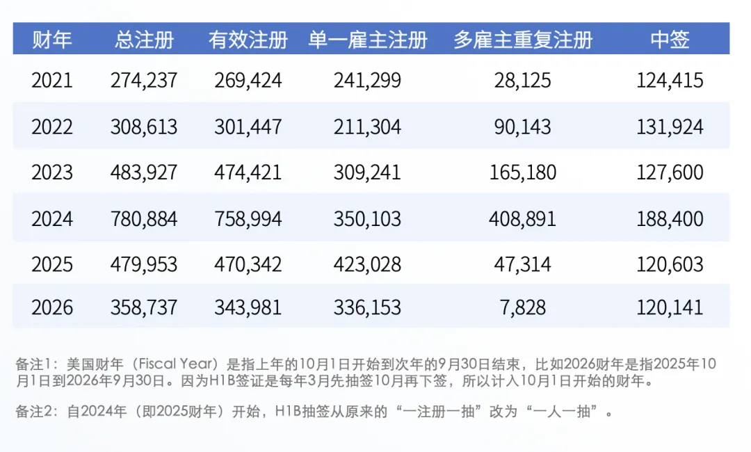 近6财年美国H1B抽签数据