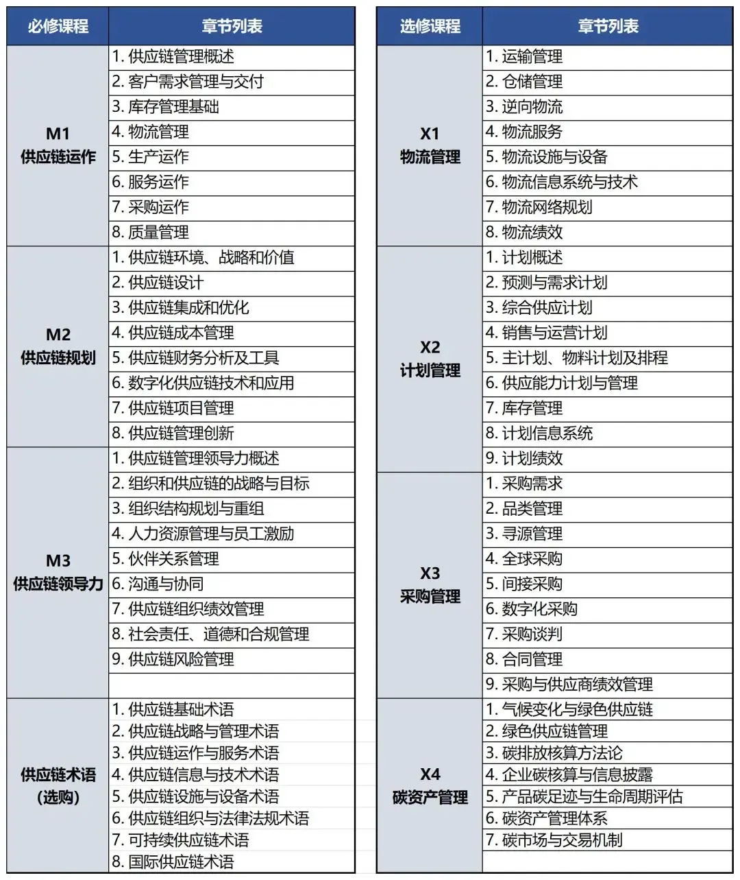 必修科目:《供应链运作》《供应链规划》《供应链领导力》