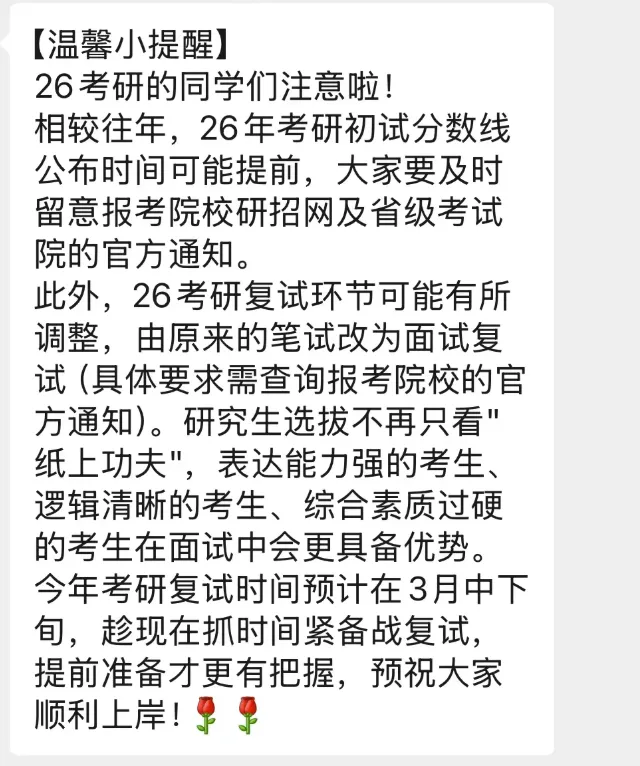 山东大学:2026年全国硕士研究生招生考试初试成绩预计于2月下旬公布,请及时关注我校后续通知。