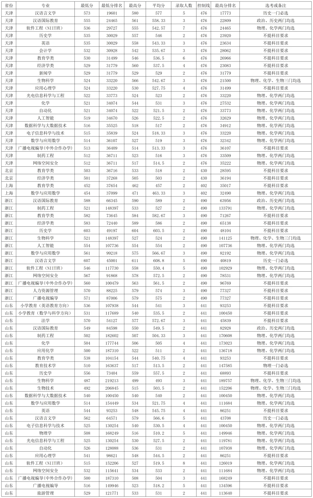 海南师范大学2025年在天津本科批录取分数线较高的专业:汉语言文学573分、汉语国际教育555分、软件工程(NIIT班)536分、历史学535分、英语535分,最低的是制药工程512分,网络空间安全512分,最低分位次36711。
