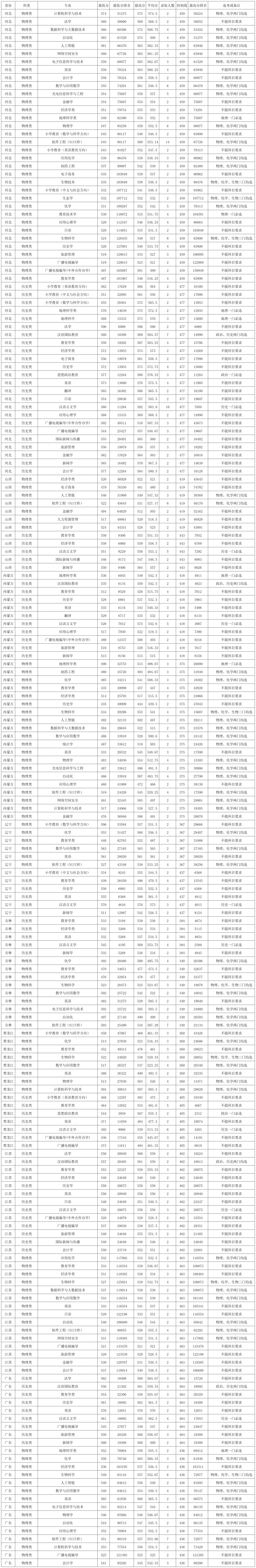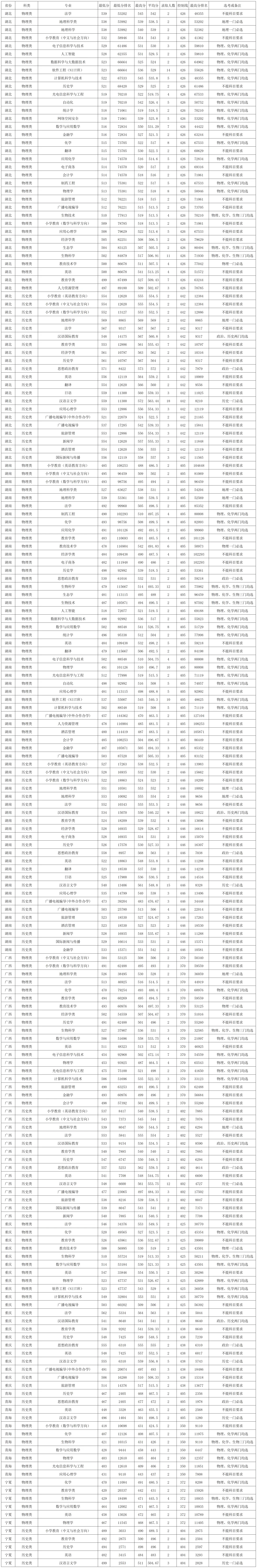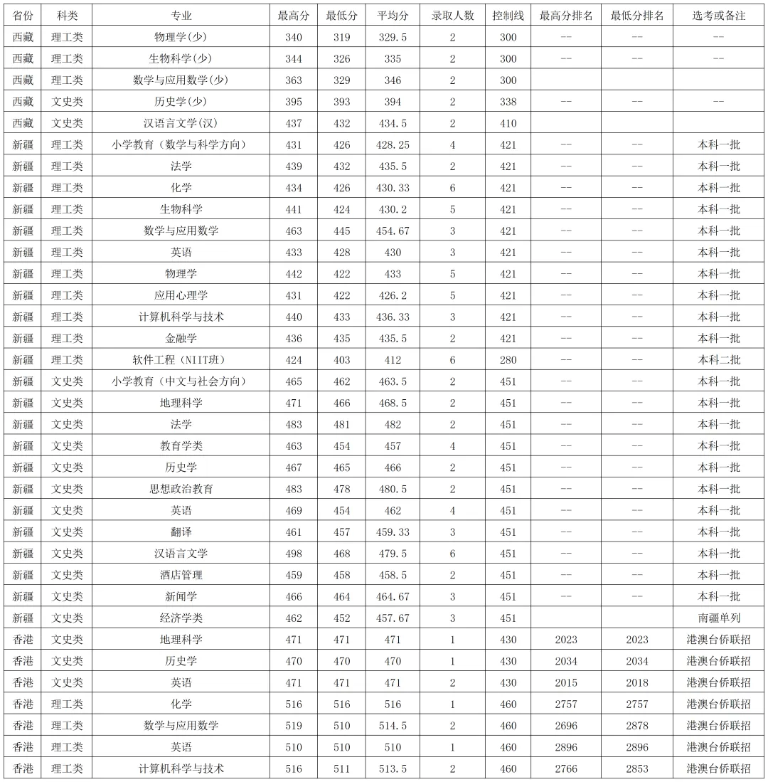 海南师范大学2025年在西藏、新疆、香港各专业录取分数线