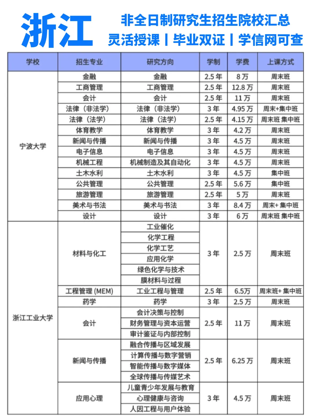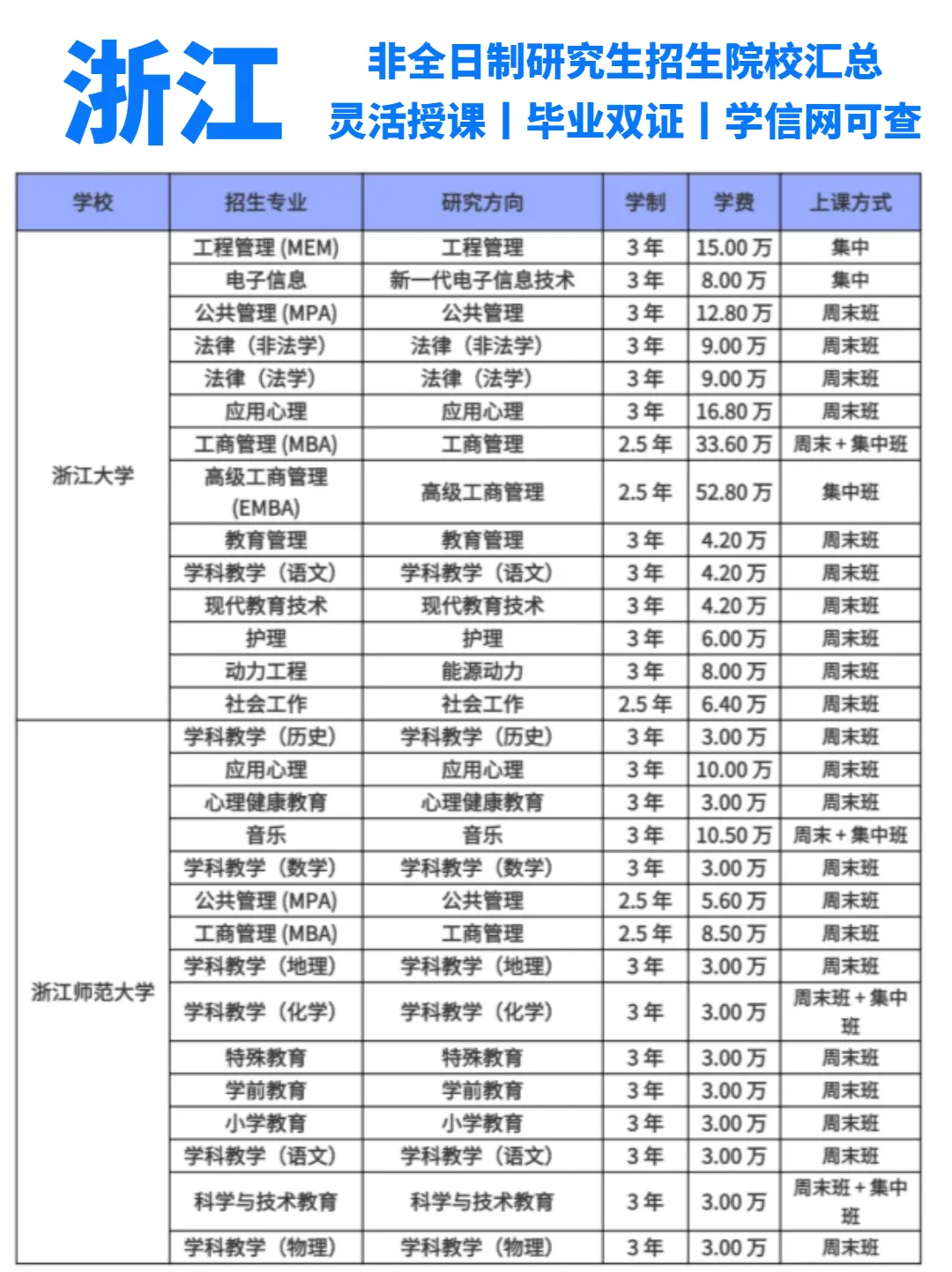 浙江地区非全日制研究生招生院校汇总来了!