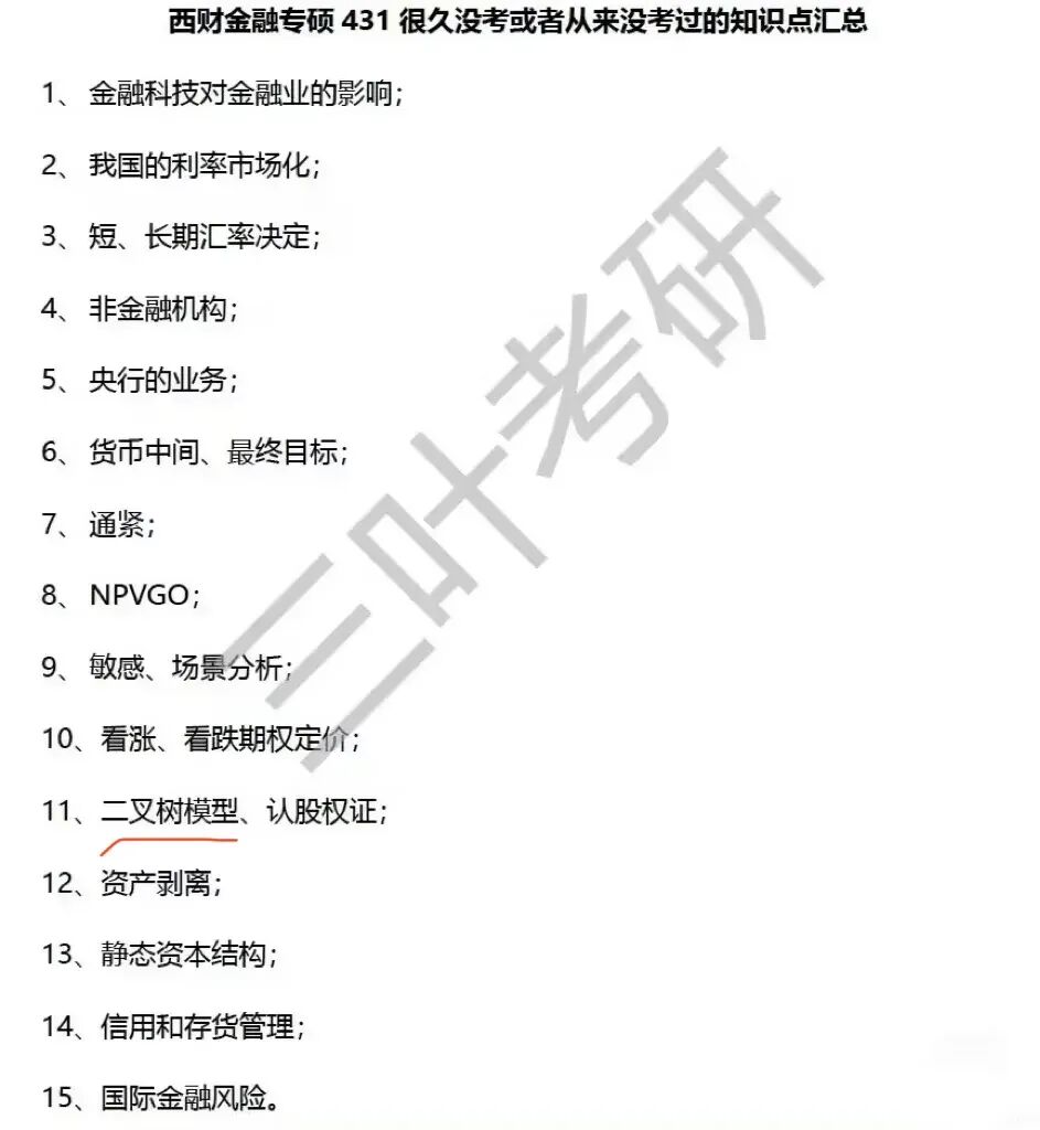 西财阿叶老师——西财考研哪些知识点没考过?西财金融专硕431考研专业课,哪些知识点很久没考过或还没考过的?