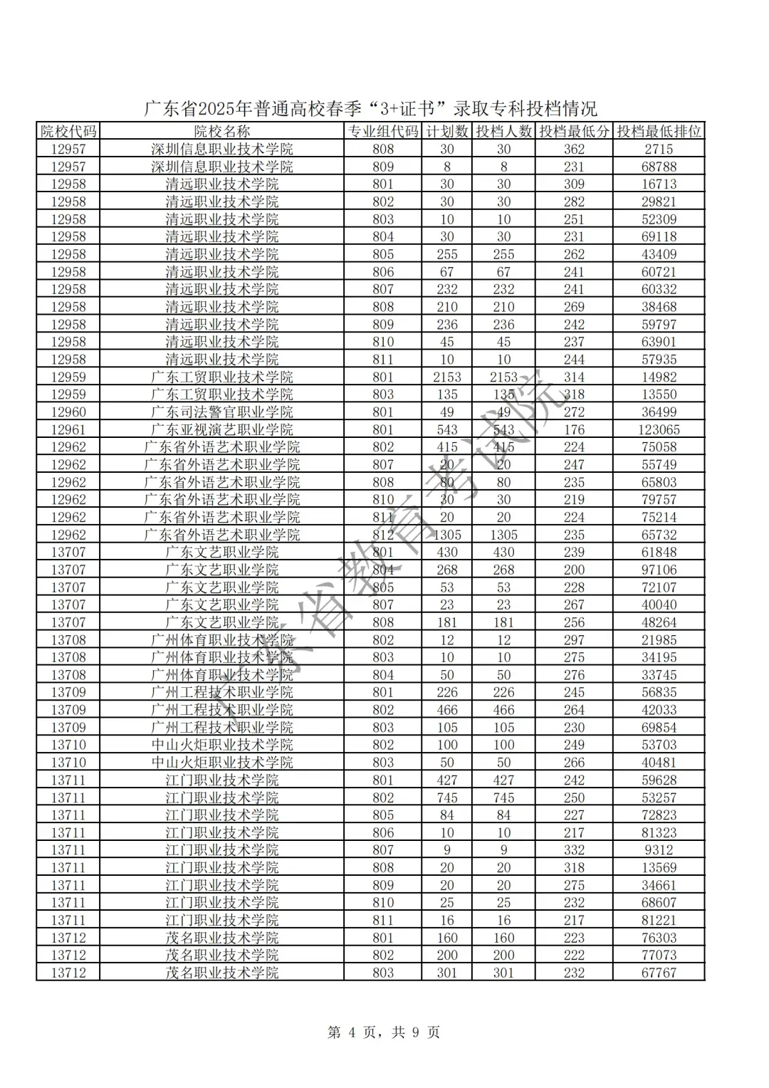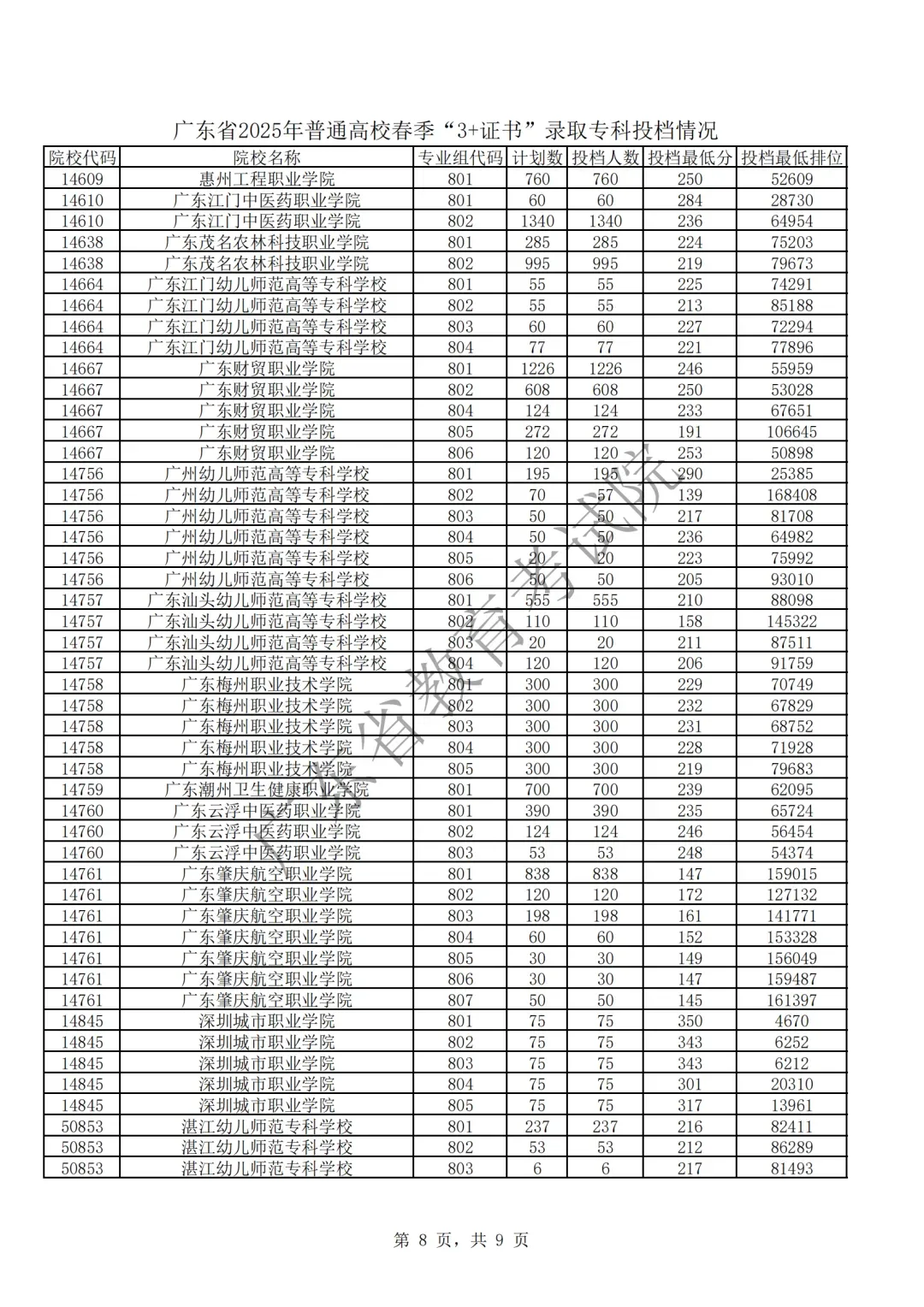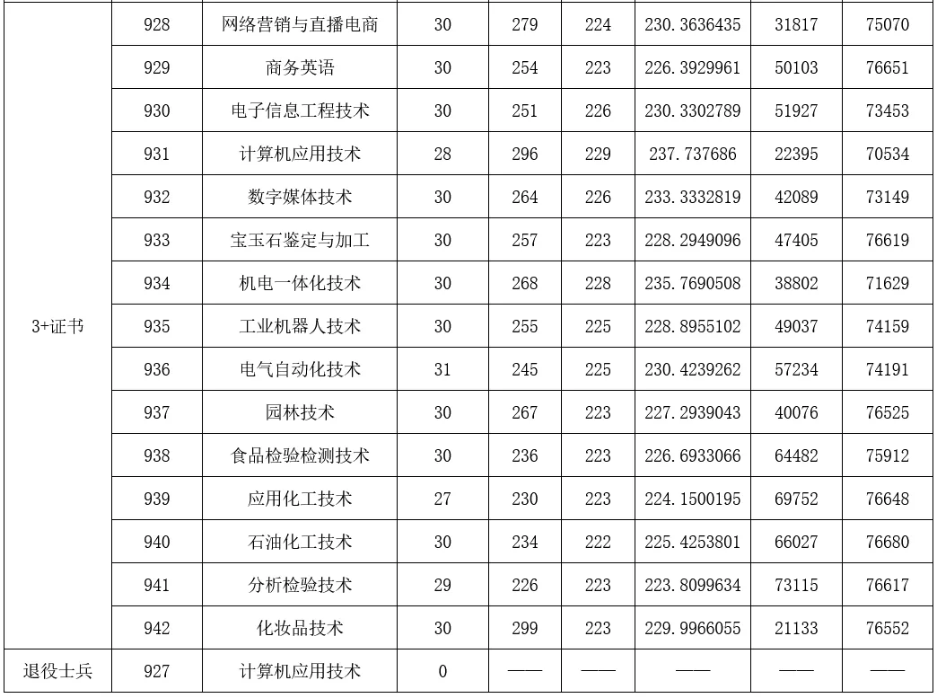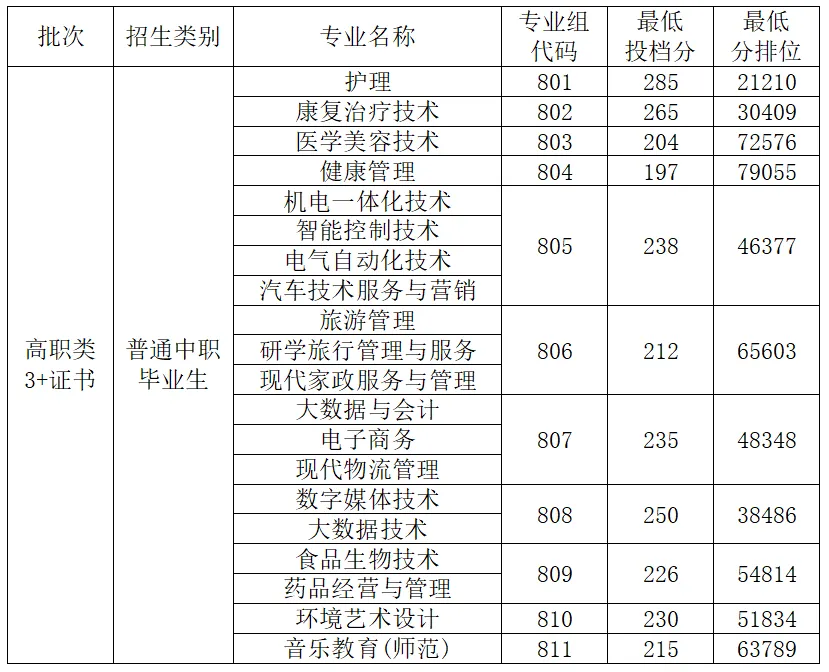 韩山师范学院2025年“3+证书”本科招生的录取分数如下: