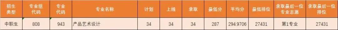 产品设计专业:综合成绩录取最低分为356.16分烹饪与营养教育专业:综合成绩录取最低分为356.06分