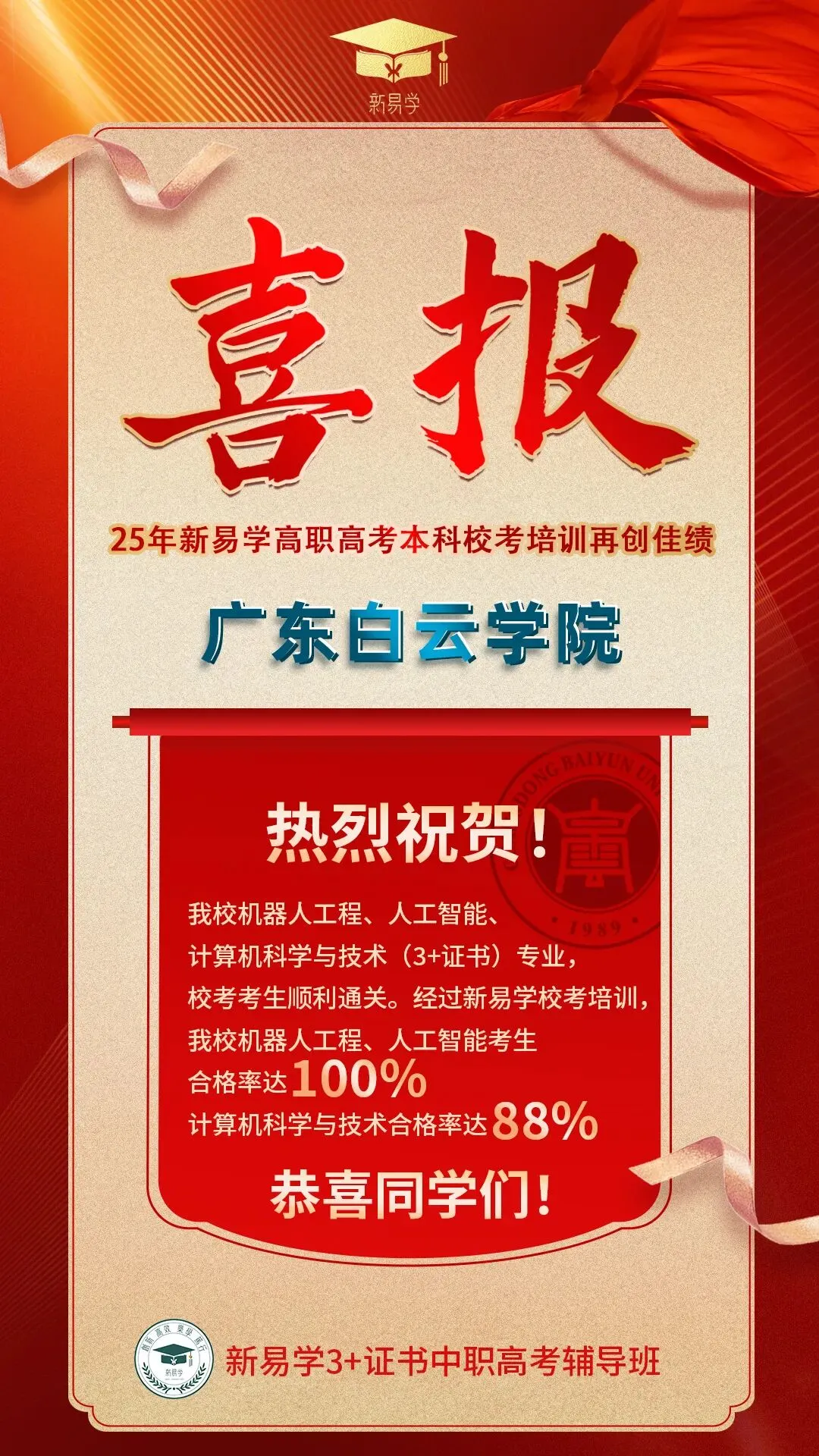 新易学机器人工程、人工智能、计算机科学与技术(3+证书)专业,校考考生顺利通关。经过新易学校考培训,机器人工程、人工智能考生合格率达100%,计算机科学与技术合格率达88%。