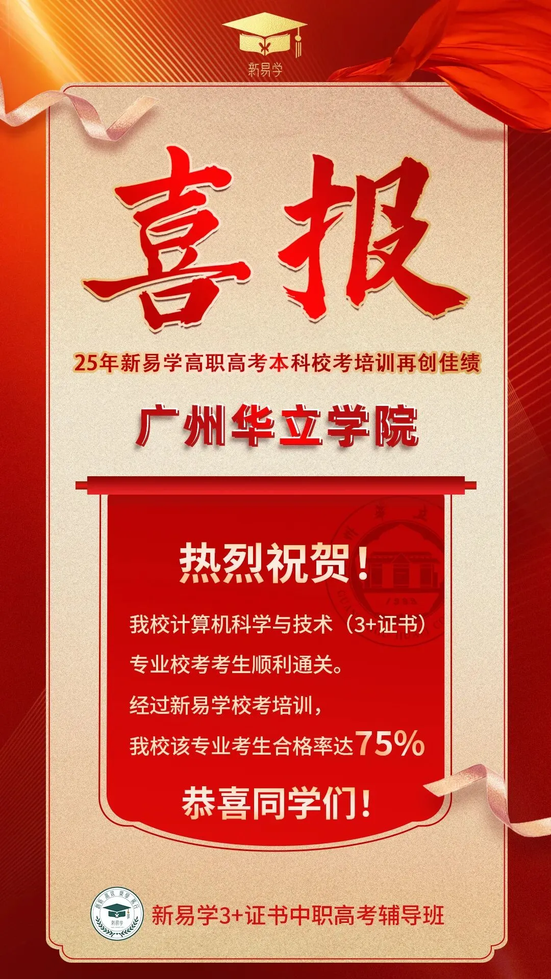 新易学计算机科学与技术(3+证书)专业校考考生顺利通关。经过新易学校考培训,新易学该专业考生合格率达75%。